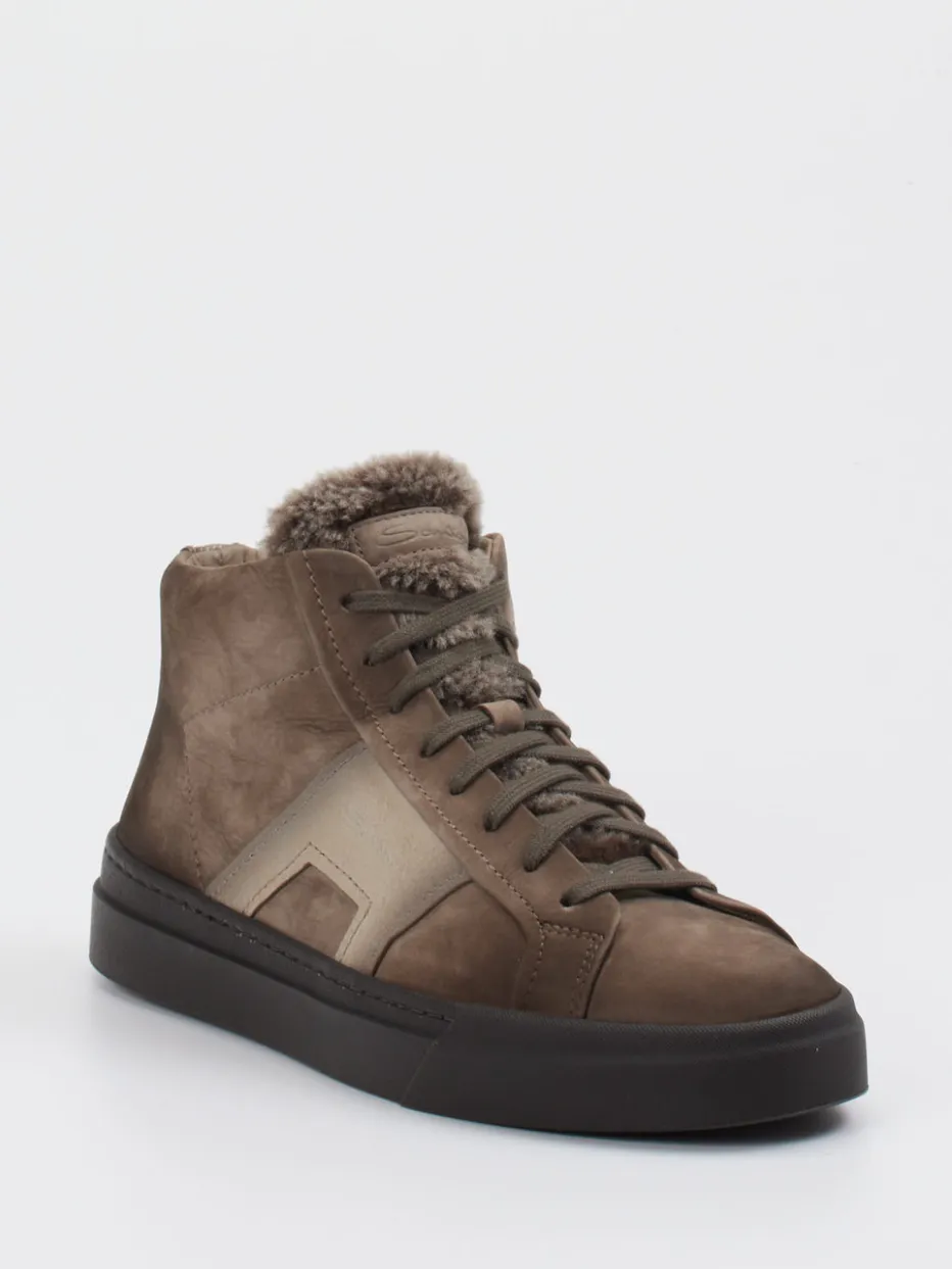 Santoni zeigt mit diesem Sneaker ein Herrenmodell der Kategorie High-Top im hochwertigen Winter-Design.