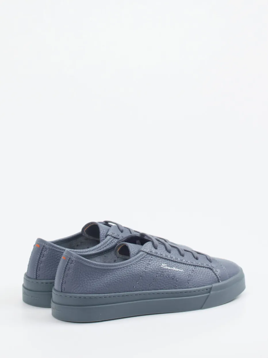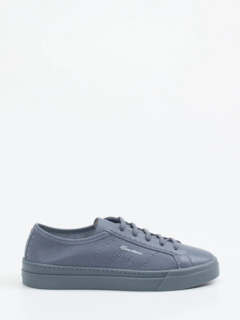 Schieferblauer Minimalismus trifft urbanen Anspruch.Dieser Herren-Sneaker von Santoni interpretiert die Low-Top-Silhouette neu. In modernen Alltagsszenarien überzeugt das Modell mit glattem, genarbtem Kalbleder und einer gummierten Laufsohle. Schieferblau dominiert als vielseitiger Farbton, kontrastiert von einer dezenten Logoprägung in Orange. Schnürung, tonale Nähte und das klassische Design bieten Stilvielfalt von Büro bis Freizeit. Leicht, ungefüttert und mit Einlagen kompatibel eignet er sich für anspruchsvolle Träger. Das sportiv-elegante Gesamtbild folgt Trends wie „Quiet Luxury“ und „Color-Blocking SS25“. Markentypische Wertigkeit in Form, Finish und dezenter Ästhetik.