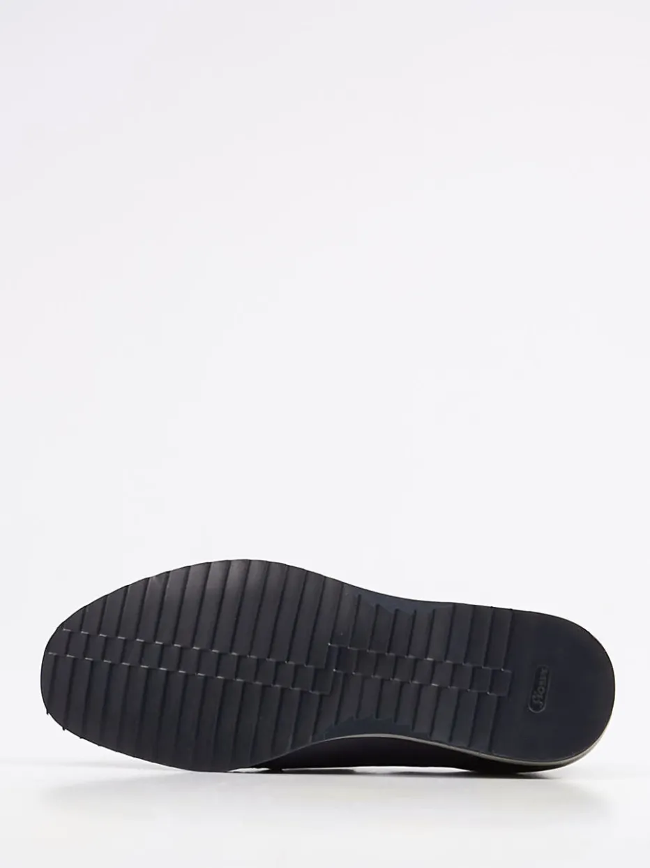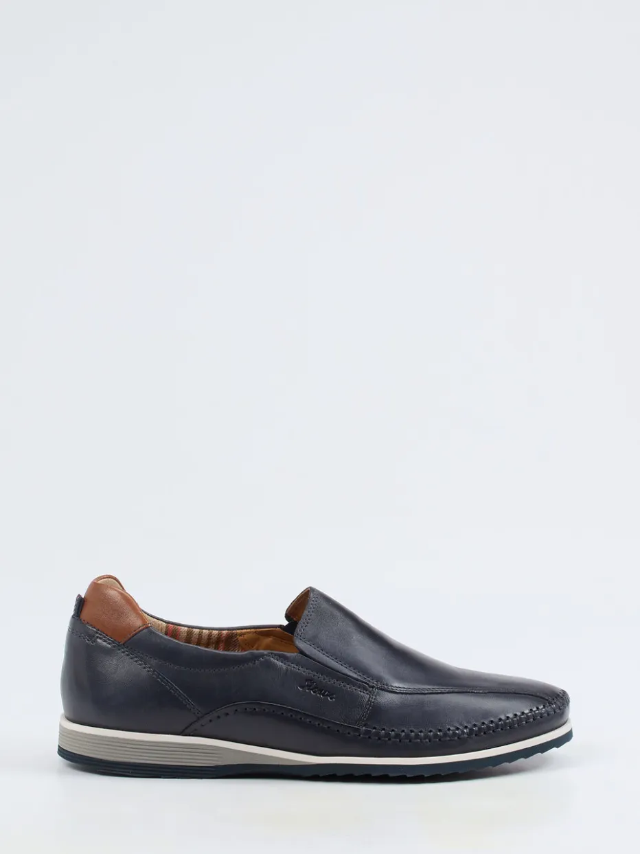 Stilvolle Lässigkeit trifft bequeme Alltagstauglichkeit.Der Herren-Komfort-Slipper von Sioux überzeugt in der Kategorie Casualwear mit geschmeidigem Kalbleder. Der dunkelblaue Schuh punktet mit einer flachen, leicht gerundeten Silhouette, glänzender Oberfläche und einem auffällig cognacfarbenen Fersenbesatz. Ziernähte, elastische Einsätze und ein gepolsterter Einstieg bieten zusätzlichen Komfort, während die gerillte Gummisohle sicheren Halt verspricht. Optimal für Büro und Freizeit sowie im Trendfeld „Quiet Luxury“ positioniert. Die Kombination aus formbetontem Design und komfortabler Innenausstattung ist typisch für die Verarbeitungsqualität von Sioux.