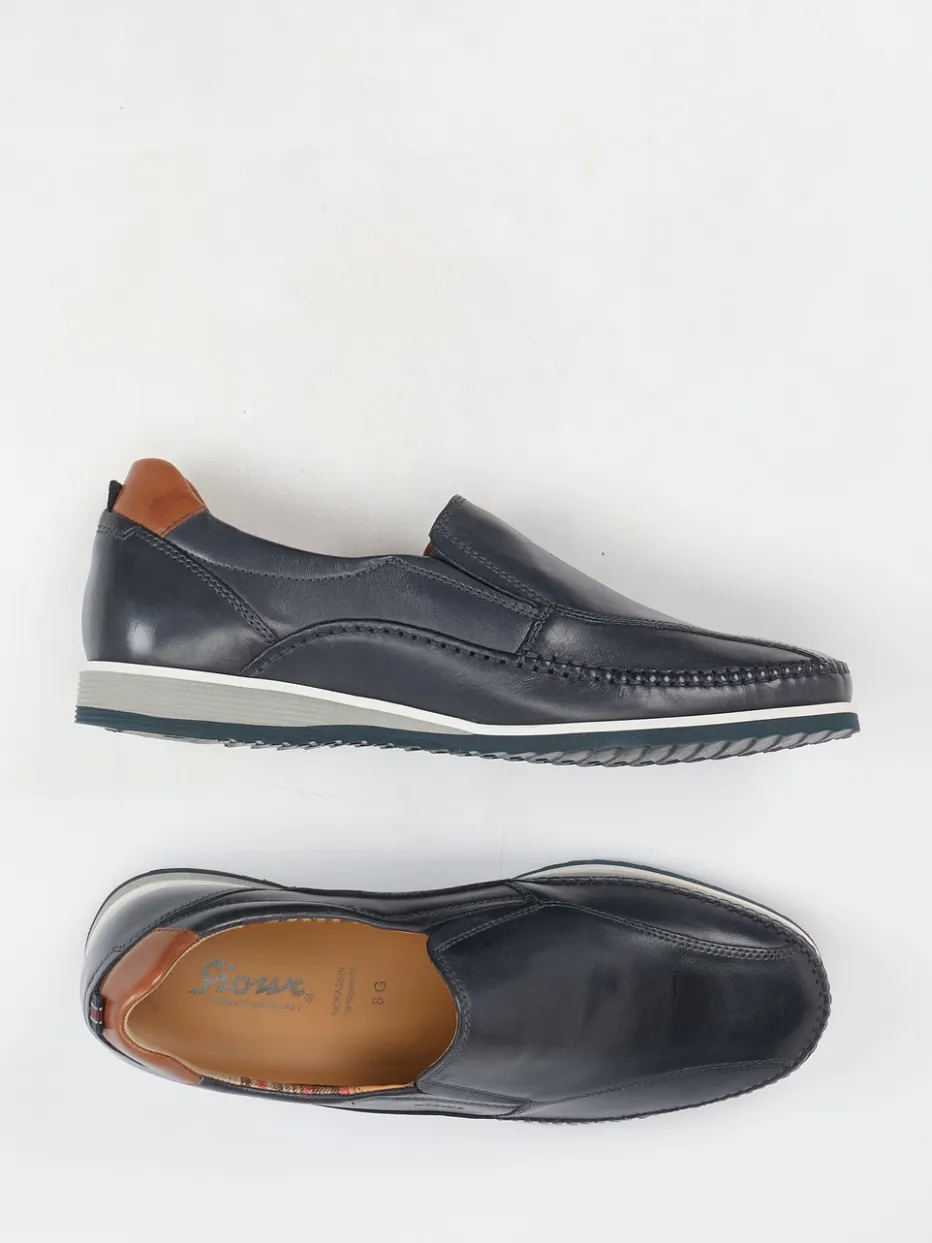 Dieser Herren-Komfort-Slipper von Sioux vereint hochwertiges Kalbleder mit smarten Details für einen stilvollen Auftritt im Büro und an freien Tagen.