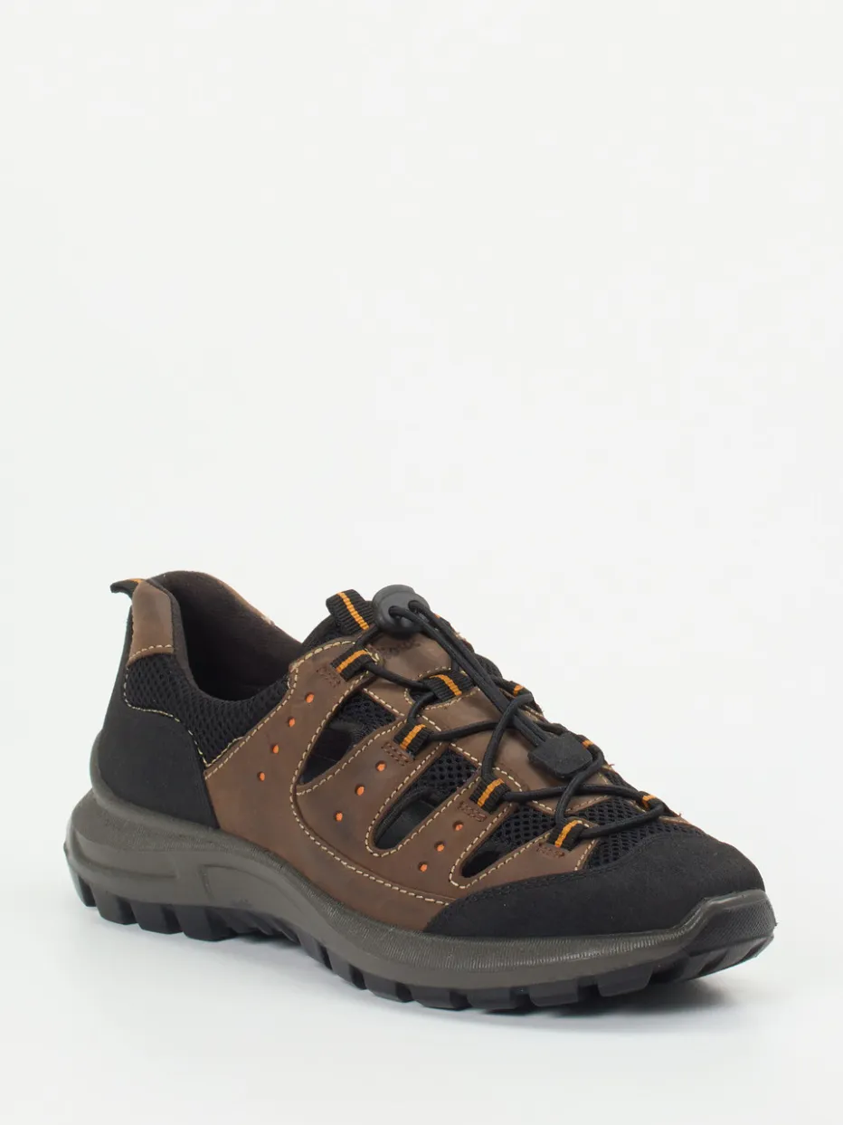 Robuster Halt beim Entdecken.Die Marke Sioux präsentiert eine geschlossene Outdoorsandale für Herren, gefertigt aus strapazierfähigem Fettleder in Dunkelbraun. Perfekt für Wanderungen und Freizeitaktivitäten punktet das Modell mit atmungsaktiven Mesh-Einsätzen in Schwarz, einem funktionalen Zugband-Schnürsystem sowie Kontrastnähten in Orange. Die strukturierte Gummisohle mit tiefem Profil bietet sicheren Grip auf wechselndem Terrain. Die sportlich-funktionale Silhouette mit geschützter Zehenpartie und austauschbarer Lederdecksohle sorgt für Tragekomfort und Stabilität. Ideal für Utility-Styles und den Gorpcore-Trend kombinierbar. Vielseitiger Outdoor-Begleiter mit handwerklicher Qualität und durchdachter Funktionalität von Sioux.
