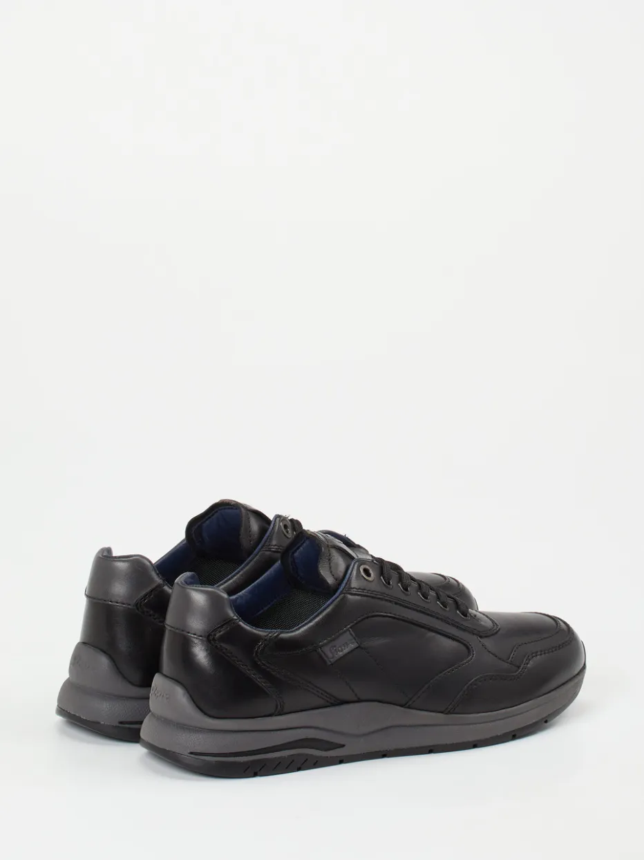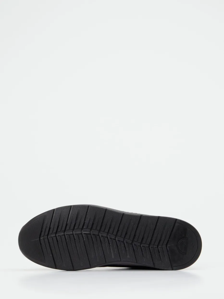 Gefertigt aus weichem, mattem Kalbleder in tiefem Schwarz, ergänzt durch dezente Ton-in-Ton-Nähte und eine feine Markenprägung an der Seite. Die sportlich-klassische Silhouette wird durch einen gepolsterten Schaftrand und die dämpfende Leichtgummisohle funktional unterstützt. Dezente Streetwear-Akzente treffen auf ruhige Eleganz.