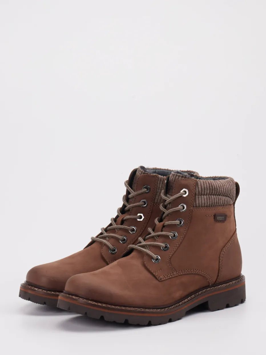 Ob beim Spaziergang im Wald oder im urbanen Alltag – das braune Nubukleder mit matter Oberfläche verbindet Langlebigkeit mit einem gepflegten Erscheinungsbild. Warmes Lammfellfutter sorgt für Komfort auch an frostigen Tagen, unterstützt durch eine rutschfeste Gummisohle mit markantem Profil. Optische Akzente setzen Metallösen, Kontrastnähte und ein textil gepolsterter Schaft. Schnürung und seitlicher Reißverschluss erleichtern das Anziehen. Im Utility-Stil gehalten, passt der Look ideal zu Outdoorjacke und Leggings.