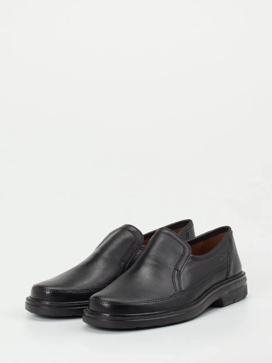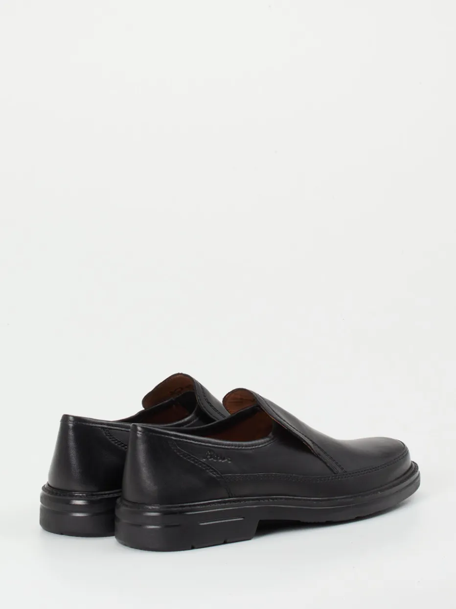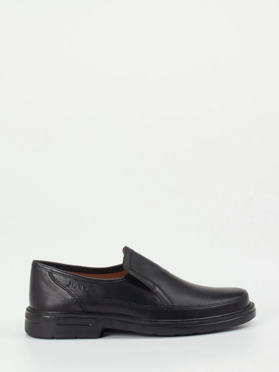 Eleganz für jeden Anlass.Sioux präsentiert einen raffiniert schlichten Herren-Slipper, gefertigt aus schwarzem, besonders weichem Lammleder. Ob im Büro oder unterwegs in der Stadt – dieser Slipper bietet zuverlässigen Komfort dank der gedämpften Luftpolstersohle und des ergonomischen Wechselfußbetts. Das matte Leder mit Ton-in-Ton-Nähten und die klassische Silhouette mit runder Form unterstreichen den zeitlosen Charakter. Seitliche Elastikeinsätze unter der Lasche erleichtern das An- und Ausziehen und erhöhen die Flexibilität im Alltag. Inspiriert vom „Quiet Luxury“-Trend eignet sich das Modell hervorragend zu grauen oder marinefarbenen Business-Hosen. Sioux steht für kompromisslose Qualität und gehobenen Tragekomfort.