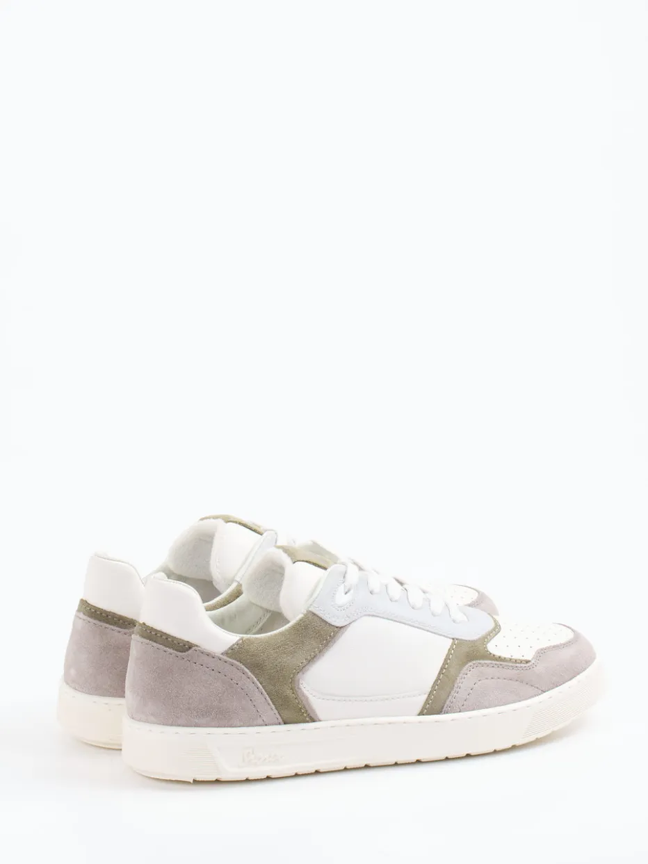Retro-Charme neu interpretiert.Sioux präsentiert mit diesem Herren-Sneaker ein Modell, das Klassik und Komfort vereint. Ideal für urbane Alltagssettings überzeugt der Low-Top-Sneaker durch seine Kombination aus weißem Kalbleder und veloursledernen Patches in abgestuften Grautönen – samtig angeschliffen und optisch harmonisch. Die klar geformte Silhouette besitzt einen gepolsterten Einstieg, eine atmungsaktive Zehenperforation sowie eine flexible Gummisohle. Die Schnürung sichert optimalen Halt, während Innenfutter und Wechselfußbett die ergonomischen Ansprüche erfüllen. Stilistisch bewegt sich das Modell zwischen Retro Runner Revival und Quiet Luxury. Ein Sneaker mit bewusstem Understatement und spürbarer Wertigkeit von Sioux.