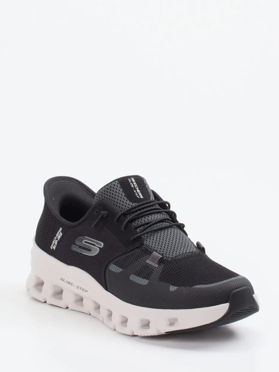 Für dynamische Schritte im Alltag.Skechers präsentiert einen sportlichen Slip-On Sneaker für Damen und Herren. Ideal für aktive Tage im Alltag oder beim Training: Der Sneaker aus atmungsaktivem Mesh-Textil mit elastischer Schnürung lässt sich mühelos anziehen. Die schwarze Farbgebung mit reflektierenden Logo-Details und zweifarbiger Zwischensohle unterstreicht das futuristische Tech-Runner-Design. Die innovative Glide-Step-Sohle kombiniert optimale Dämpfung beim Auftritt mit einem energetischen Absprung. Innen sorgt ein austauschbares Air-Cooled Memory Foam-Fußbett für Druckentlastung und Frische – sogar waschmaschinengeeignet. Komfort und Style für sportliche Looks mit Skechers Typizität.
