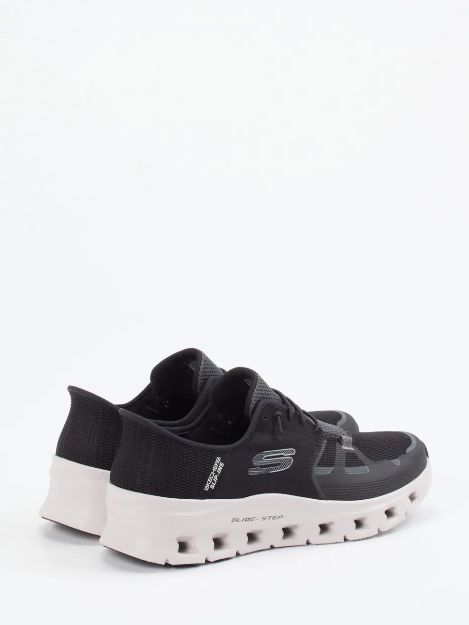 Dieser sportliche Skechers Slip-On vereint atmungsaktives Mesh, reflektierende Details und innovativen Laufkomfort mit der Glide-Step-Sohle und Air-Cooled Memory Foam.