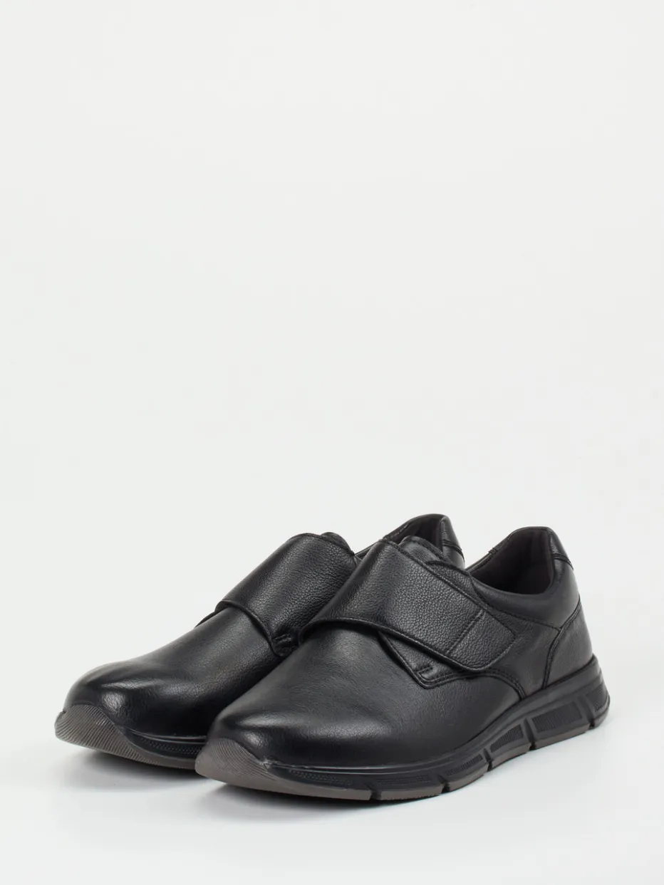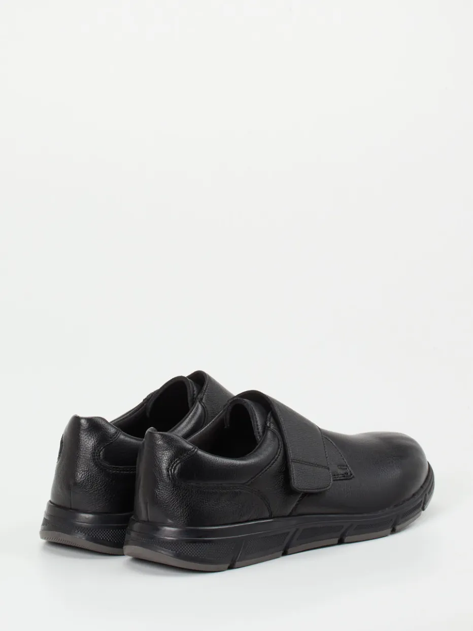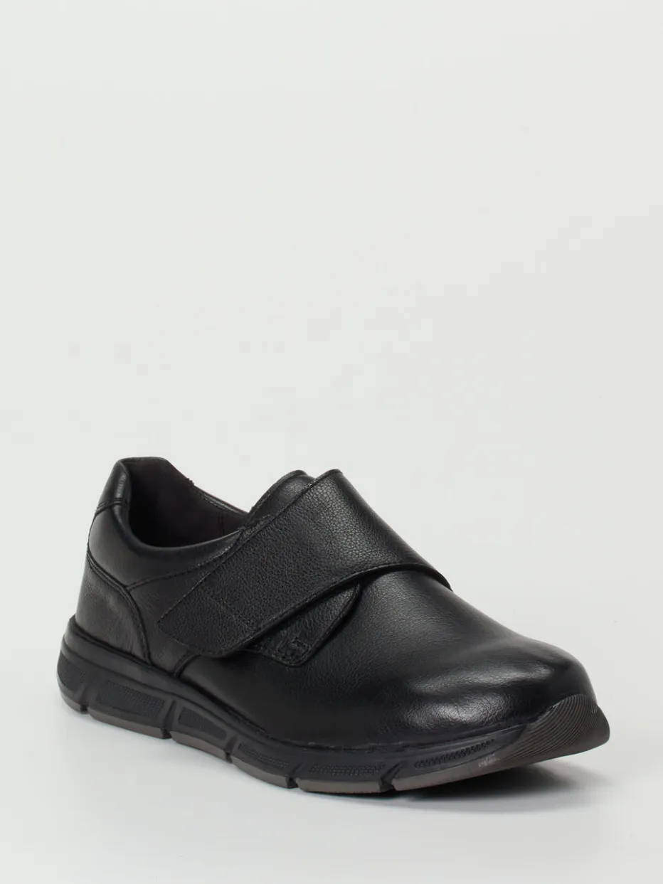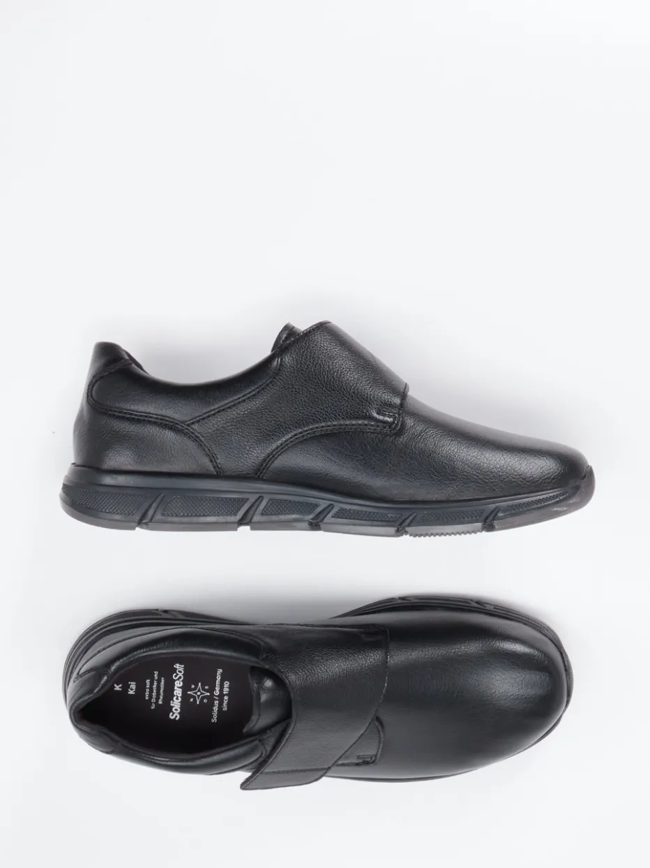 Bewegungsfreiheit mit Komfortplus.Solidus präsentiert einen Herren-Klettslipper aus der Komfortlinie, gefertigt aus weichem Kalbleder. Für den Alltag wünschen sich viele Männer ein unkompliziertes An- und Ausziehen sowie ein angenehmes Tragegefühl – genau das erfüllt dieser Slipper mit Klettverschluss. Das schwarze Kalbleder zeigt sich matt mit Ton-in-Ton-Nähten, während ein gepolsterter Schaftrand den Halt optimiert. Innen sorgt atmungsaktive Mikrofaser für ein hygienisches Fußklima. Die leicht dämpfende Gummisohle schont die Gelenke und bringt Grip, auch bei unsicheren Böden. Besonders geeignet bei Hallux valgus oder für orthopädische Einlagen. Ideal zu Stretch-Jeans und Softshelljacke. Solidus steht für passformgerechte Lösungen in hochwertiger Verarbeitung.