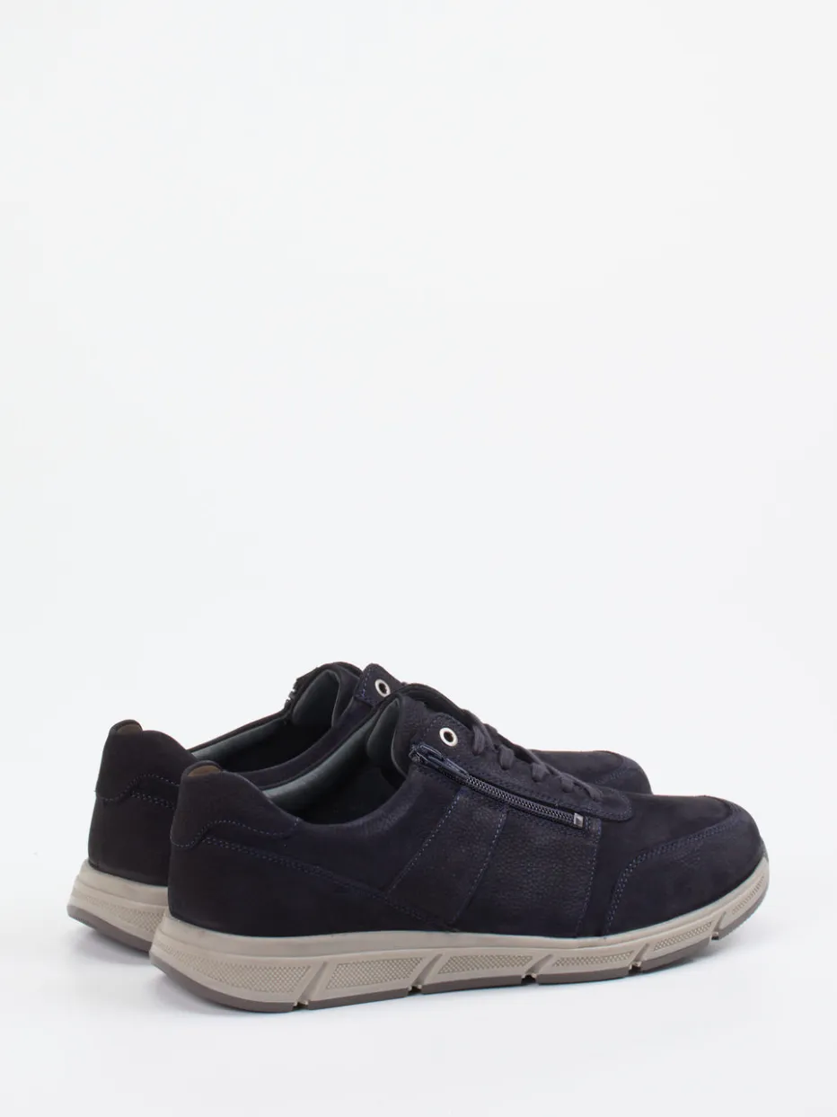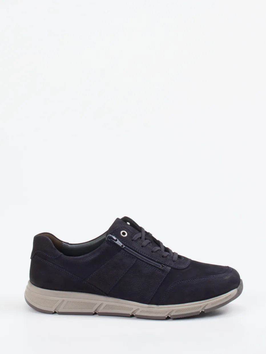 Viel Komfort für bewegte Tage.Solidus präsentiert mit diesem Schnürschuh ein komfortorientiertes Modell für Herren. Ideal für Alltag und Freizeit: Das tiefdunkelblaue Nubukleder zeigt sich samtig angeschliffen und besonders strapazierfähig. Die klassisch-runde Form wird durch dezente Ton-in-Ton-Nähte und ein strukturiertes Overlay akzentuiert. Dank kombinierter Schnürung und seitlichem Metallreißverschluss gelingt das Anziehen mühelos. Im Inneren sorgt ein gepolstertes Lederfutter in Weite K für angenehmen Sitz; die flexible Gummisohle mit Luftpolsterung federt Erschütterungen spürbar ab. Das minimalistische Design passt perfekt zu grauen Jeans oder sportiven Looks. Solidus steht für Passformkompetenz mit funktionalem Mehrwert und zeitgemäßem Stil.