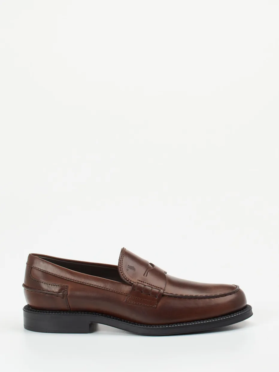 Der Herren-Loafer von Tod’s vereint Tradition und modernen Stil in perfekter Manier. Ob für Meetings im Büro oder den gepflegten Alltagsauftritt – dieser Penny Loafer aus feinem, glänzendem Kalbleder in Mittelbraun erfüllt höchste Ansprüche. Die klassische Silhouette mit flacher Form, Mokassin-Naht und charakteristischem Penny-Steg wird durch Ton-in-Ton-Nähte und ein geprägtes Logo akzentuiert. Eine flexible Gummisohle mit Profilpunkten sorgt für Komfort, das ledergefütterte Innenleben für ein angenehmes Tragegefühl. Die klare Linienführung und edle Zurückhaltung machen ihn zum Inbegriff des Quiet Luxury. Ein Schuh mit stilvoller Substanz – markant, langlebig, Tod’s.