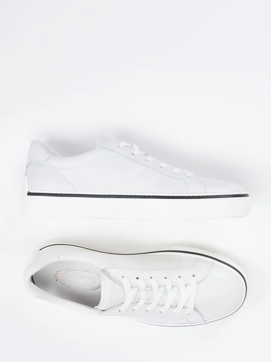 Der minimalistische Sneaker von Tod’s vereint hochwertiges Kalbleder mit klarer Linienführung und dezenten Kontrastelementen – ein stilvolles Essential für moderne Urban Looks.