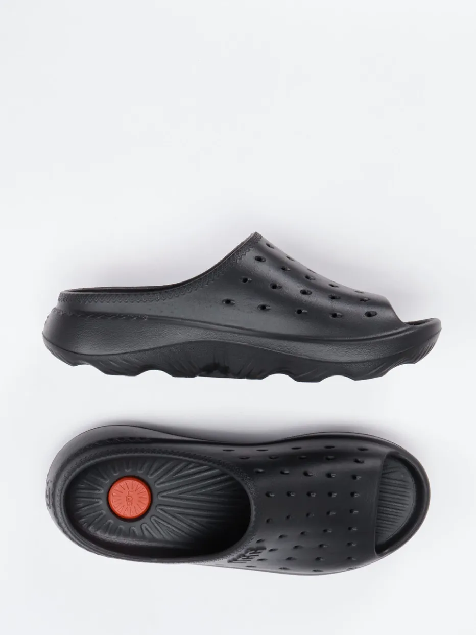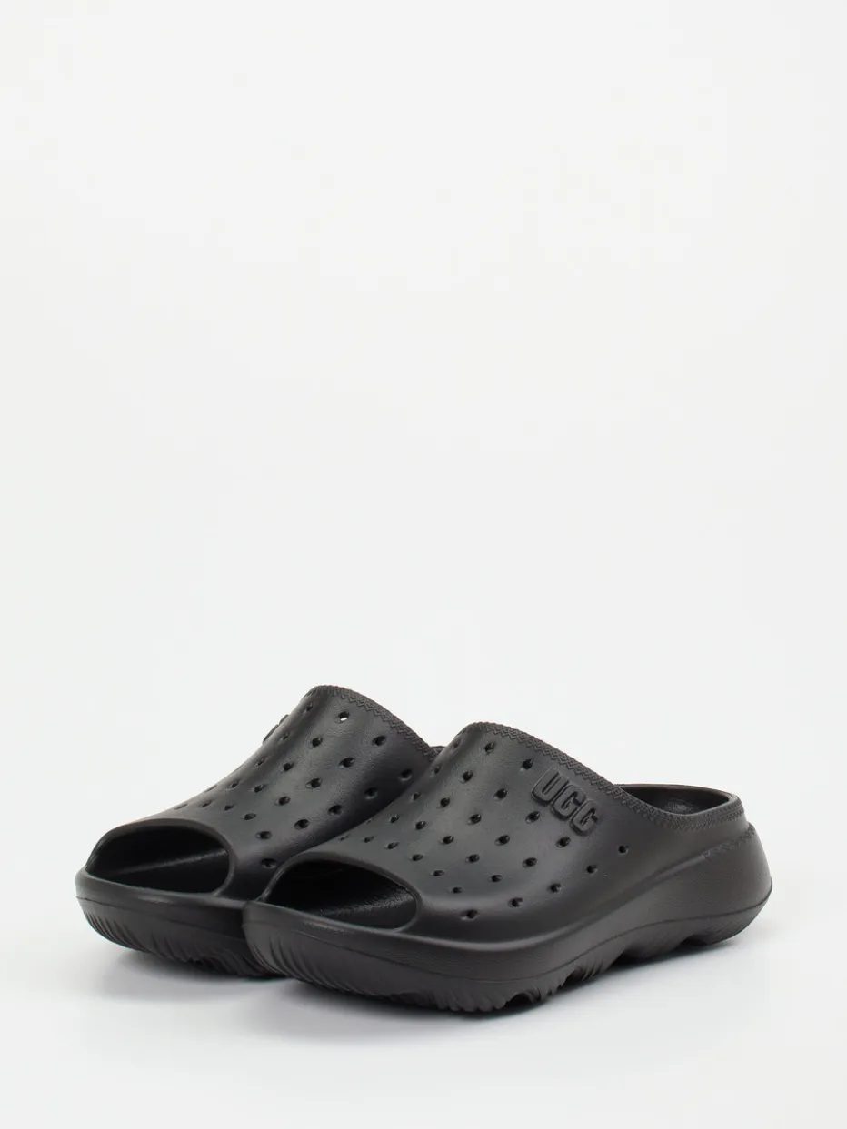 UGG präsentiert mit dieser Komfort-Pantolette ein unisex Modell für entspannte Stunden. Die tiefschwarze Slide aus hochwertigem Gummi mit matter Oberfläche bietet dank ergonomischem Fußbett und doppelt gepolsterter Innensohle optimale Dämpfung.