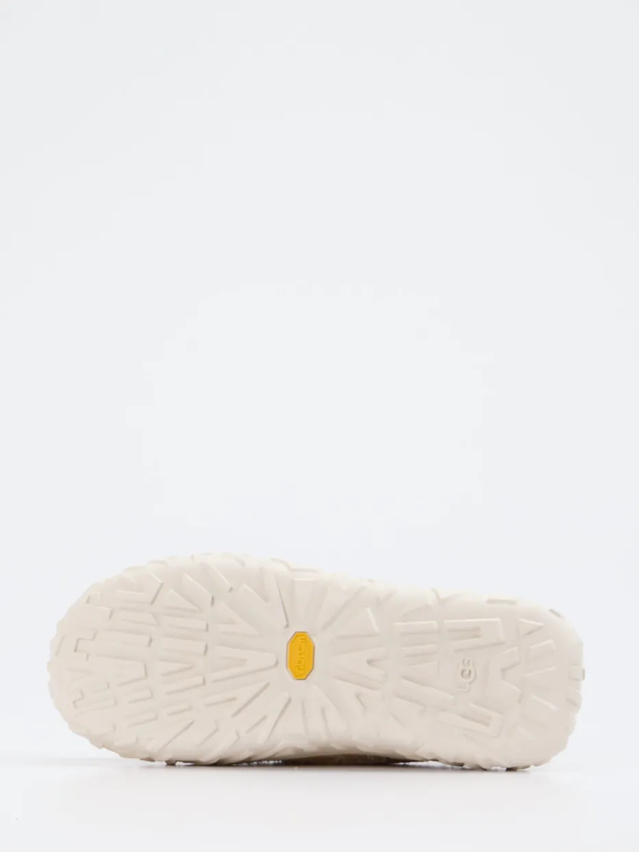 Bequem durch kalte Tage.UGG präsentiert einen vielseitigen Herren-Loafer für entspannte Freizeit- und Indoor-Momente. Für winterliche Outfits oder gemütliche Stunden zu Hause ist dieses Modell mit seiner gefütterten Verarbeitung die stilvolle Wahl. Das sandfarbene Veloursleder zeigt eine samtige, leicht raue Oberfläche. Innen sorgt weiches UGGplush aus Wolle und Tencel für angenehmes Tragegefühl. Die flache Silhouette wird durch eine chunky Vibram-Wrap-Tech-Profilsohle in Offwhite akzentuiert – ein klares Streetwear-Statement. Ideal zu Stricksocken oder lässiger Loungewear. UGG vereint Komfort und urbane Ästhetik in einem relaxed-eleganten Look.