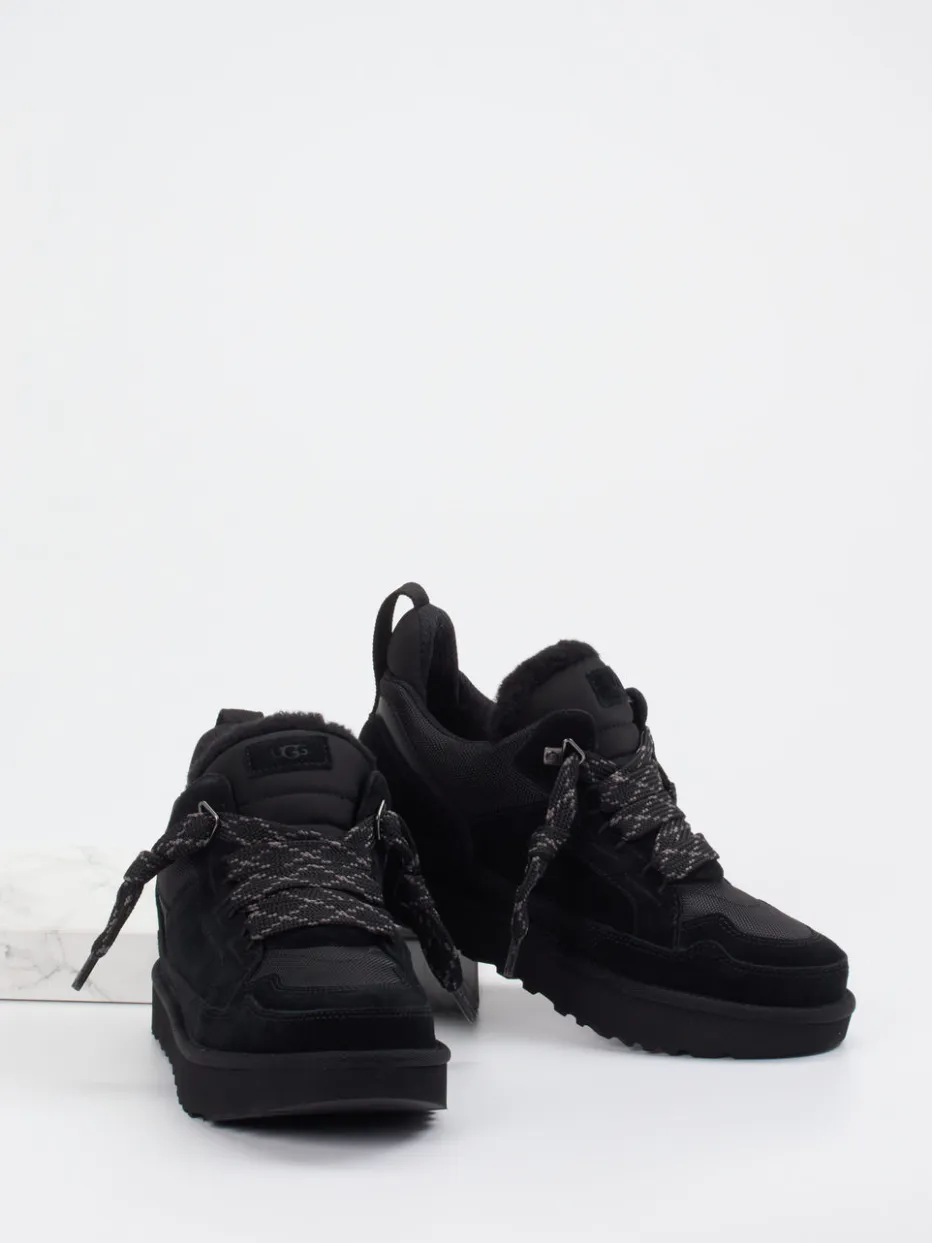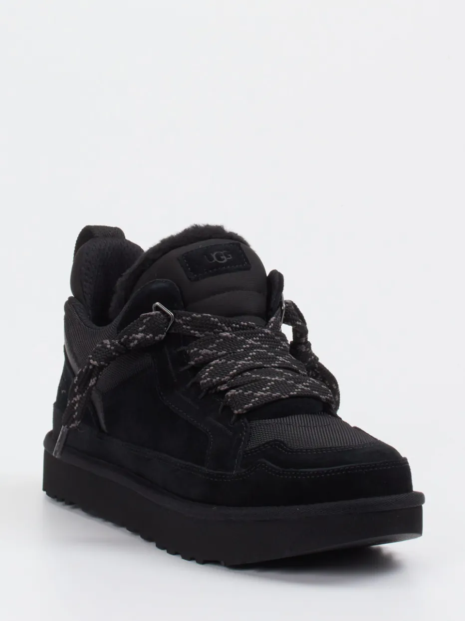 Robuster Komfort für kalte Tage.UGG präsentiert einen gefütterten Damen-Sneaker für Herbst und Winter. Für wechselhafte Witterung und urbanes Outdoor-Styling ist dieser voluminöse Low-Top ideal. Gefertigt aus Veloursleder mit samtiger Oberfläche und atmungsaktiven Mesh-Einsätzen, vereint er Komfort mit griffigem Halt. Die schwarze Farbe wirkt vielseitig kombinierbar, während Details wie zweifarbige Schnürsenkel, Zuglasche und das Ton-in-Ton-Branding moderne Akzente setzen. Das warme Lammfellfutter und die stark profilierte Gummisohle sorgen für Trittsicherheit und Schutz bei kalten Temperaturen. Stilistisch trifft das Modell auf aktuelle Streetwear- und Gorpcore-Trends. UGG bietet hier Funktionalität in typischer Designqualität für stilvolle Winter-Outfits.