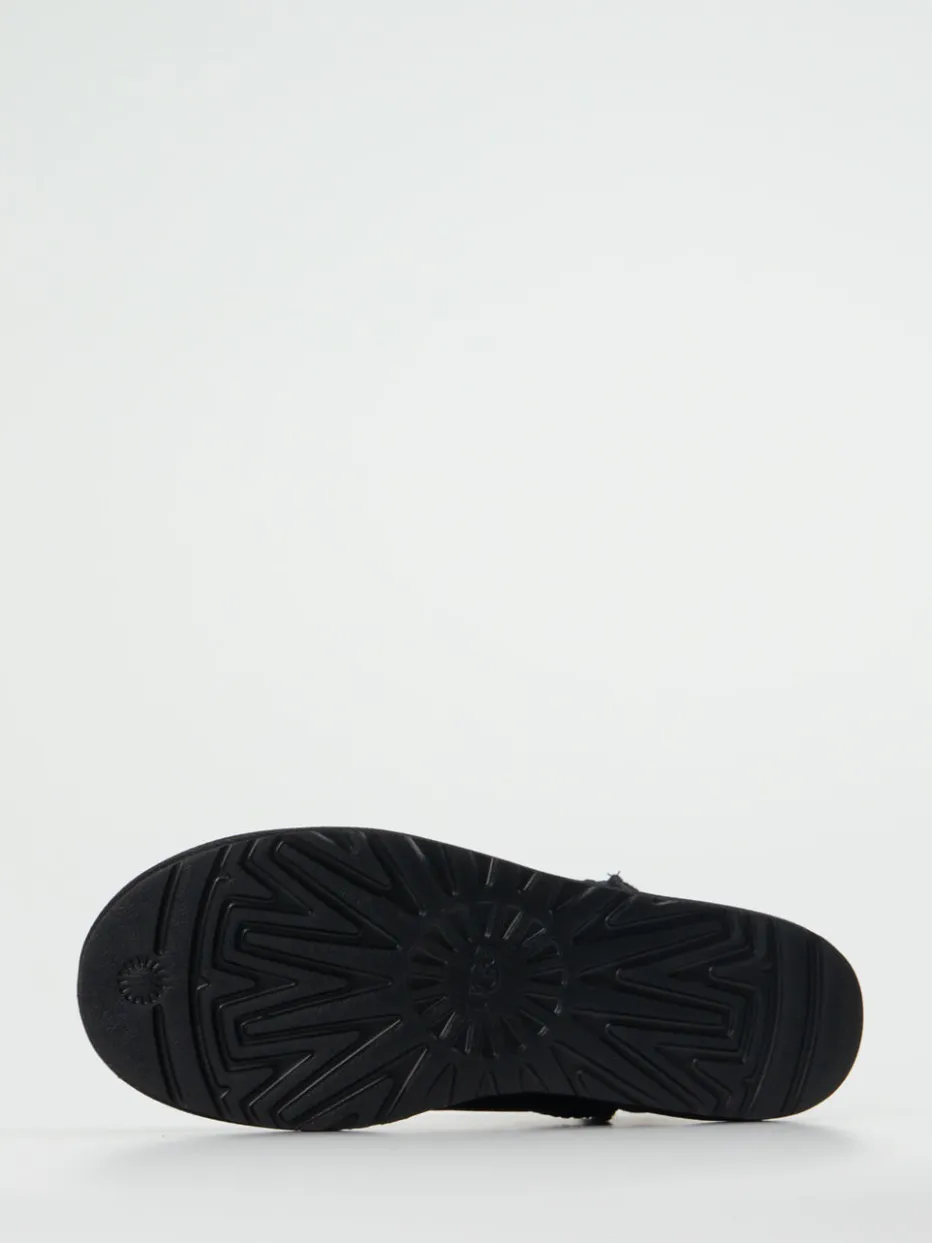 Das tiefschwarze Veloursleder und das echte Lammfell sorgen für stilvolle Wärme an kalten Tagen. Ein UGG-Klassiker mit zeitgemäßem Minimalismus und hohem Tragekomfort.
