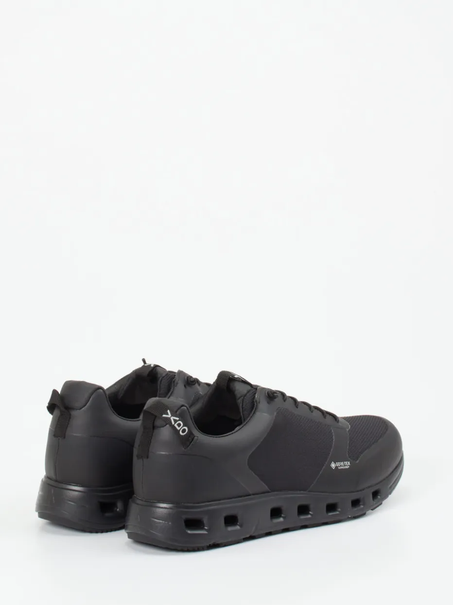 Modernes Design für aktive Tage.Die Marke Vado präsentiert einen schwarzen Herren-Performance-Sneaker, der Funktionalität und urbanen Stil vereint. Für wechselhafte Wetterbedingungen konzipiert, überzeugt das Modell mit atmungsaktivem Mesh und wind- wie wasserdichter GORE-TEX-Membran. Der sportlich-technische Schnitt wird durch reflektierende Sohlen-Details und funktionale Zuglaschen ergänzt. Eine profilierte Flex-Gummisohle mit Belüftungselementen sorgt für stabilen Halt und angenehmes Fußklima. Die Elastschnürung erlaubt schnelles Hineinschlüpfen – eine klassische Schnürvariante liegt bei. Modisch greift der Sneaker den Gorpcore-Trend auf und passt ideal zu Funktionsjacken oder Techwear. Vado steht für durchdachte Performance mit klarem Styleanspruch.