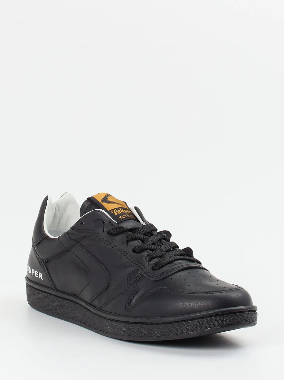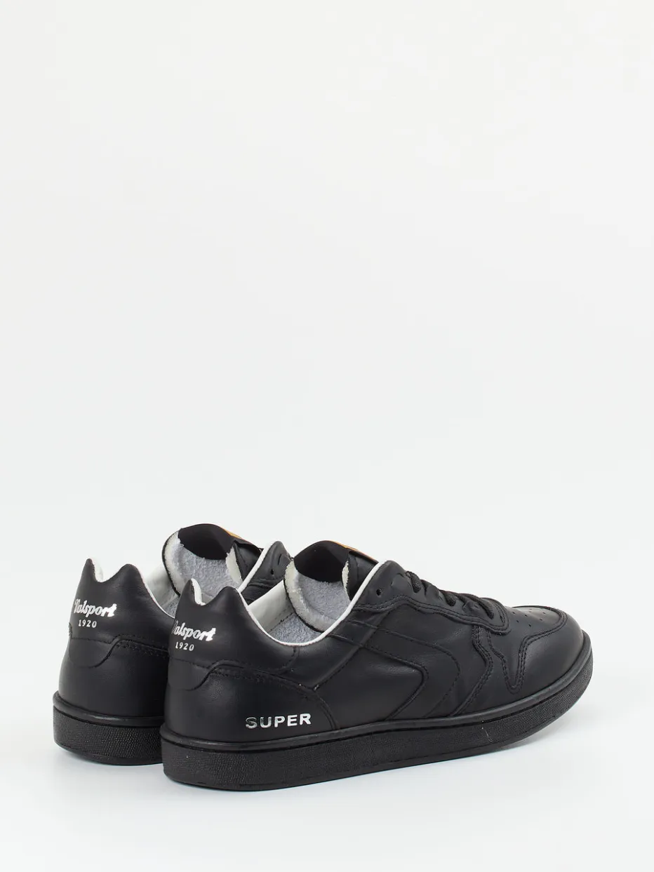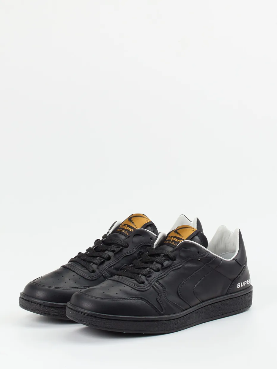 Schwarzes Kalbleder mit matter Oberfläche trifft auf kontrastierendes Weißfutter und goldfarbene Akzente auf der Zunge. Praktische Schnürung, ein gepolsterter Einstieg sowie ein herausnehmbares Fußbett betonen den Komfort. Die klassische Silhouette und der silberfarbene „SUPER“-Schriftzug an der Ferse verleihen dem Modell Retro-Charakter. Ideal für urbane Casual-Looks und stille Streetwear-Statements in der Cool-Season.