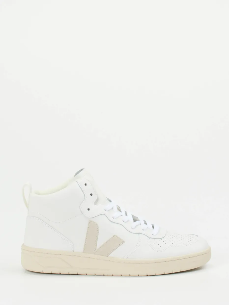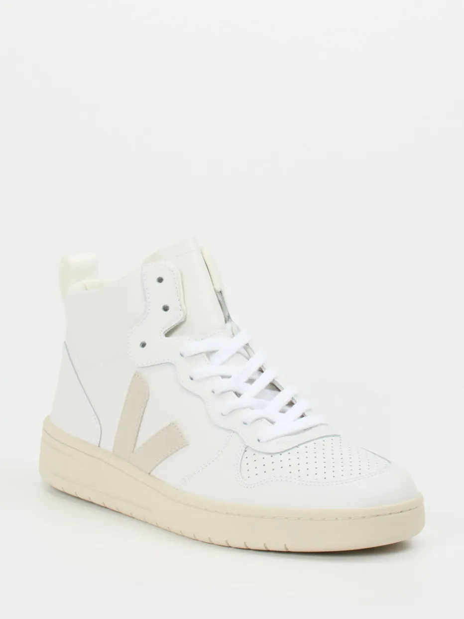 Urbaner Purismus mit Retro-Charakter.VEJA interpretiert den High-Top Sneaker als cleanes Essential für jeden Tag. Ob beim Stadtbummel oder im Café mit Freunden – das weiße Leder dieses Sneakers kombiniert mit einer Gummisohle aus Naturkautschuk schafft einen dezenten, sportlich-modernen Look. Die Oberfläche wirkt matt, während Ton-in-Ton-Nähte und ein appliziertes Wildleder-Logo dezente Akzente setzen. Textiles Innenfutter und perforierte Zehenkappe sorgen für Komfort und Atmungsaktivität. Von der Mode inspiriert, passt der Schuh nahtlos zur »Clean Aesthetic« und Retro-Court-Styles der aktuellen Saison. Ideal kombinierbar mit Basics in Creme oder Beige. Ein stilvoller Begleiter von VEJA – minimalistisch, funktional und klar im Design.