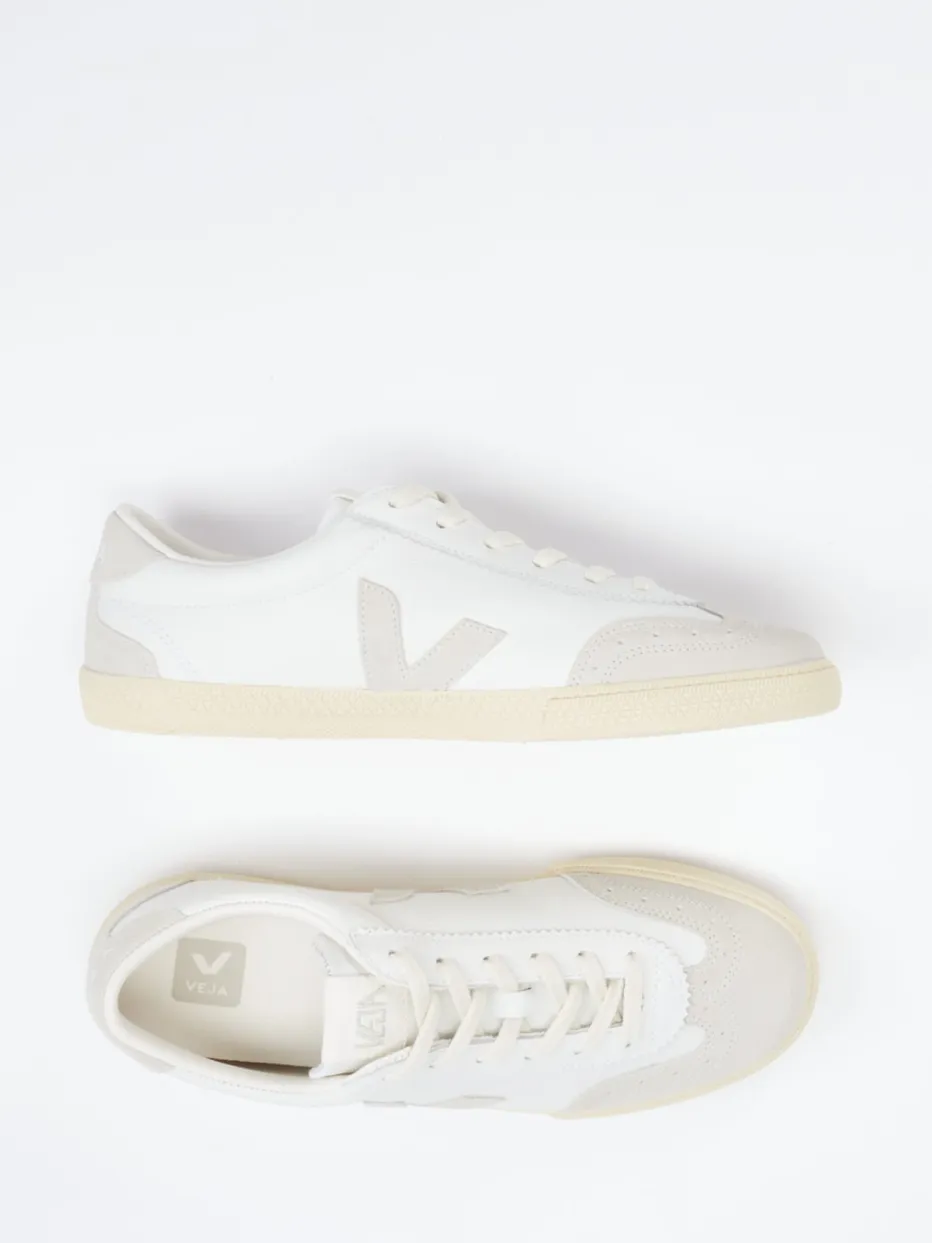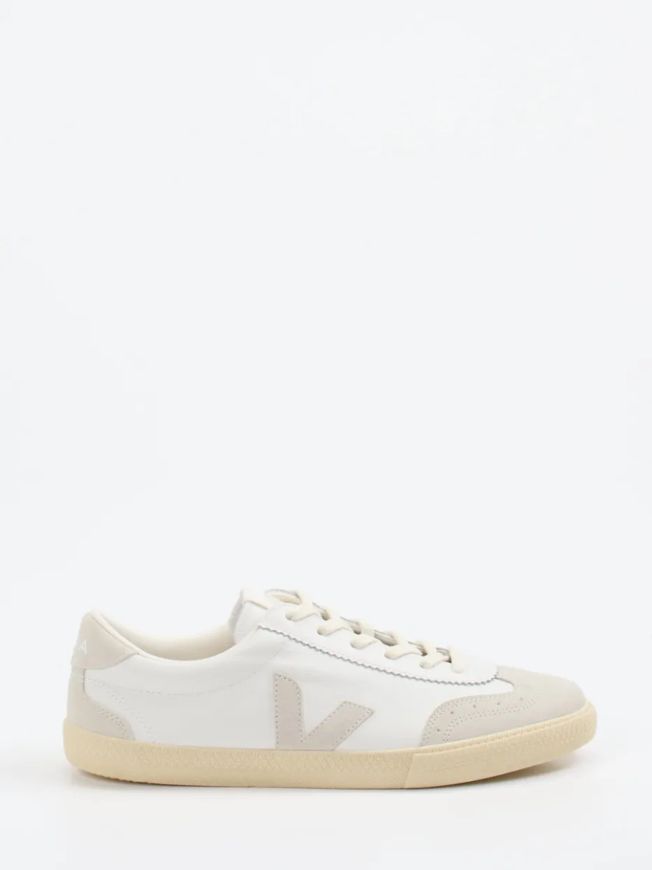 Der Sneaker von VEJA aus der Linie Frühjahr/Sommer vereint minimalistisches Design mit urbaner Freizeitästhetik. Ideal für legere Alltagsmomente im urbanen Umfeld überzeugt das Modell durch feines Kalbleder in Offwhite mit matt strukturierter Oberfläche, ergänzt um Details aus perforiertem Wildleder an Zehen und Ferse. Der tonale Logo-Print an der Seite und die strukturierte Gummisohle unterstreichen den zurückhaltenden Streetstyle-Charakter. Innen sorgt ein atmungsaktives Textilfutter für Komfort. Das bequeme Fußbett ist herausnehmbar. In Kombination mit Naturtönen entsteht ein zeitgemäßer „Quiet Luxury“-Look. VEJA steht für nachhaltige Produktion und ikonischen Minimalismus mit Alltagstauglichkeit.
