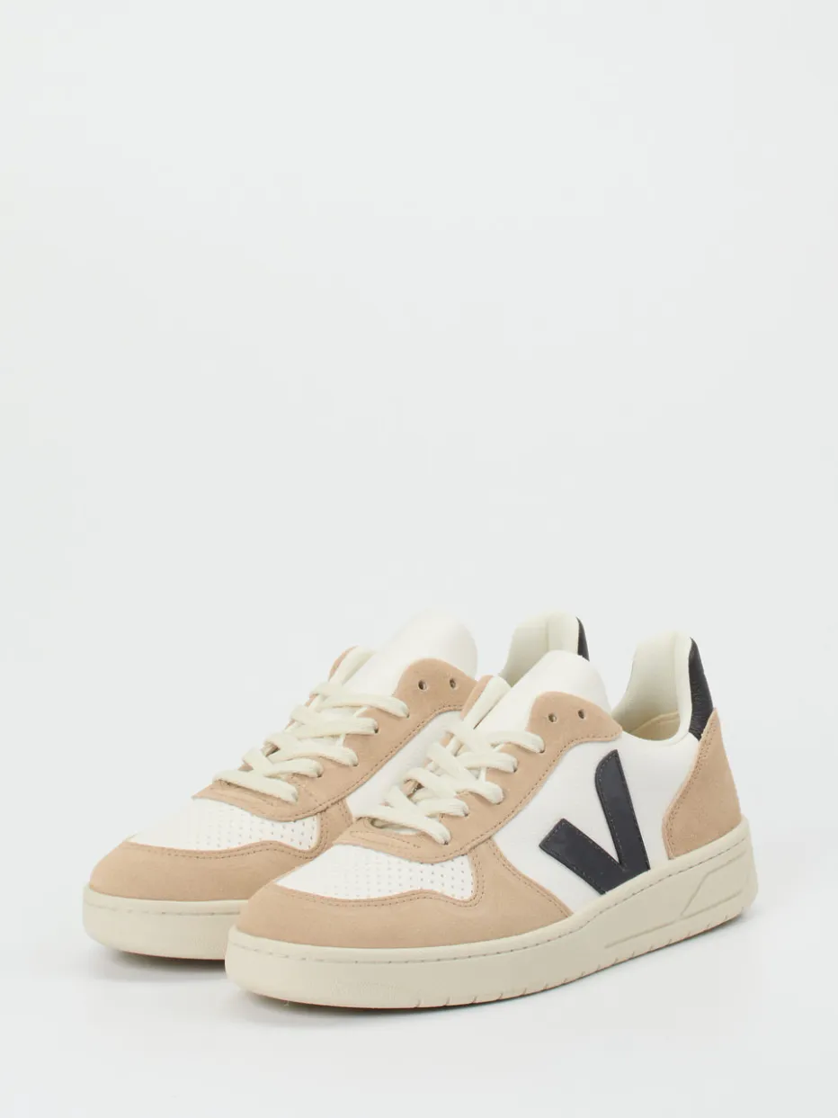 Puristisches Design trifft Retro-Charakter.Der Sneaker von VEJA zählt zur Kategorie Low-Top Sneaker und vereint klassische Formen mit modernen Materialien. Ideal für urbane Alltagssituationen bietet das Modell eine hochwertige Kombination aus weißem Kalbleder und taupefarbenem, samtig angeschliffenem Veloursleder. Ein perforiertes Vorderblatt und das kontrastierende schwarze VEJA-Logo setzen dezente Style-Akzente. Der Schnürverschluss sorgt für sicheren Halt, während die Sohle aus nachhaltigem Naturkautschuk mit Profilstruktur optimalen Komfort bietet. In seiner cremeweißen Optik wirkt der Schuh klar, unaufgeregt und vielseitig kombinierbar – besonders zu minimalistischen Freizeitlooks. Ein gelungenes Beispiel für zeitgemäßes, bewusstes Schuhdesign von VEJA.