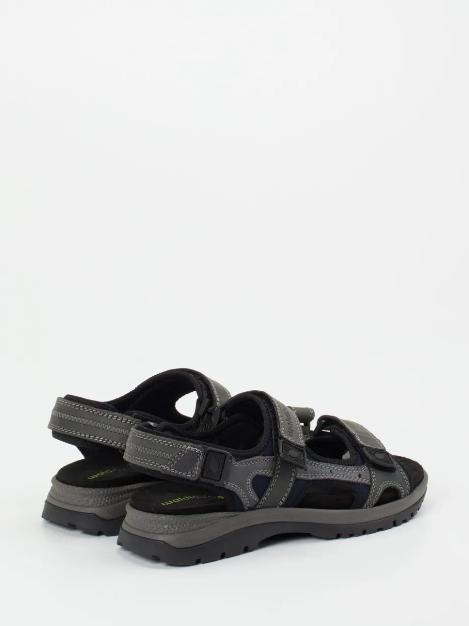 Die funktionale Herren-Sandale von Waldläufer kombiniert wetterbeständiges Fettleder mit einem ergonomischen Fußbett und griffiger Profilsohle – ideal für komfortbewusstes Outdoor-Gehen.