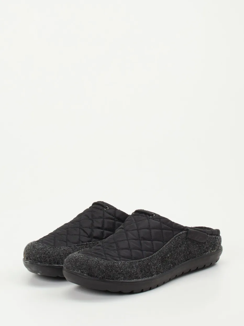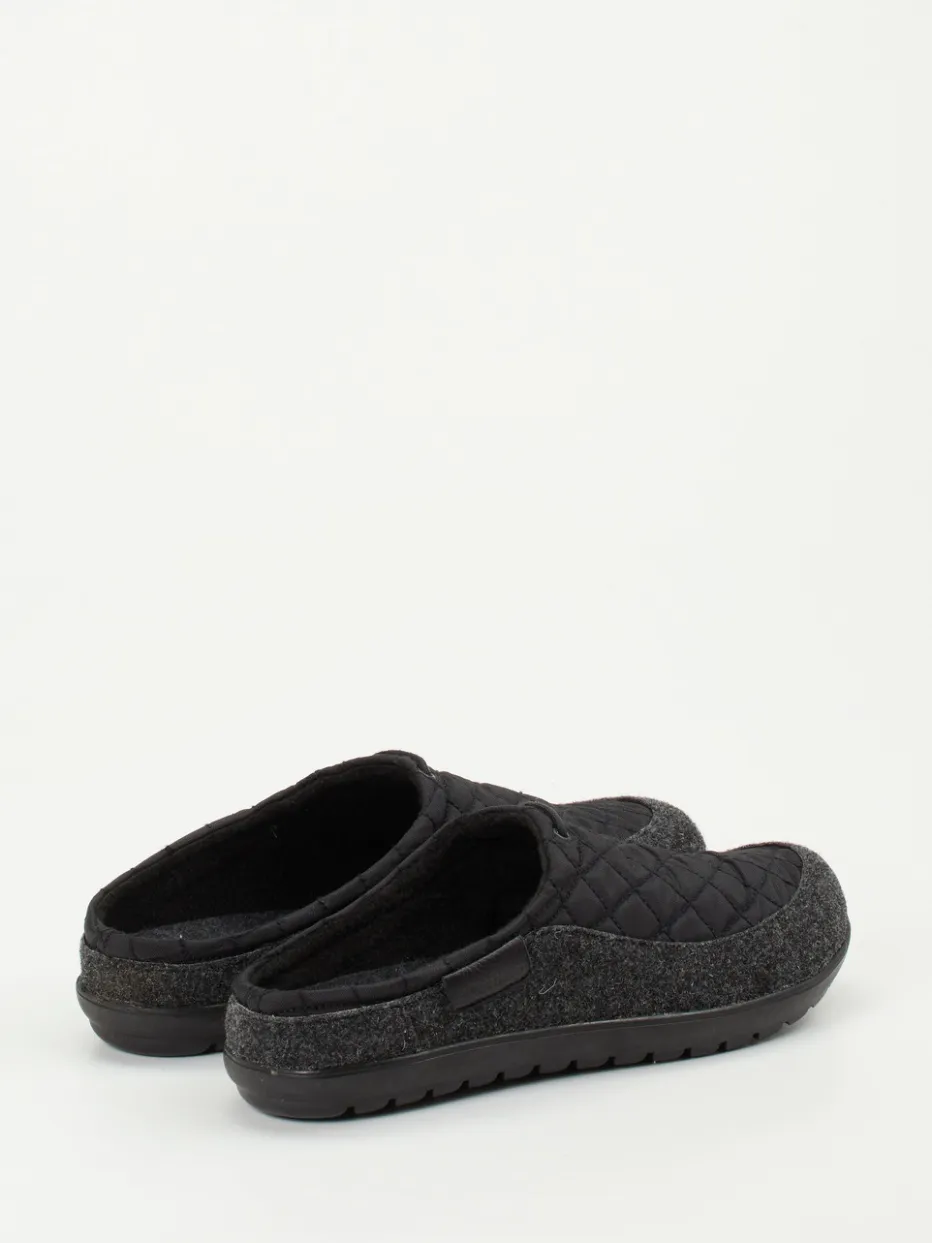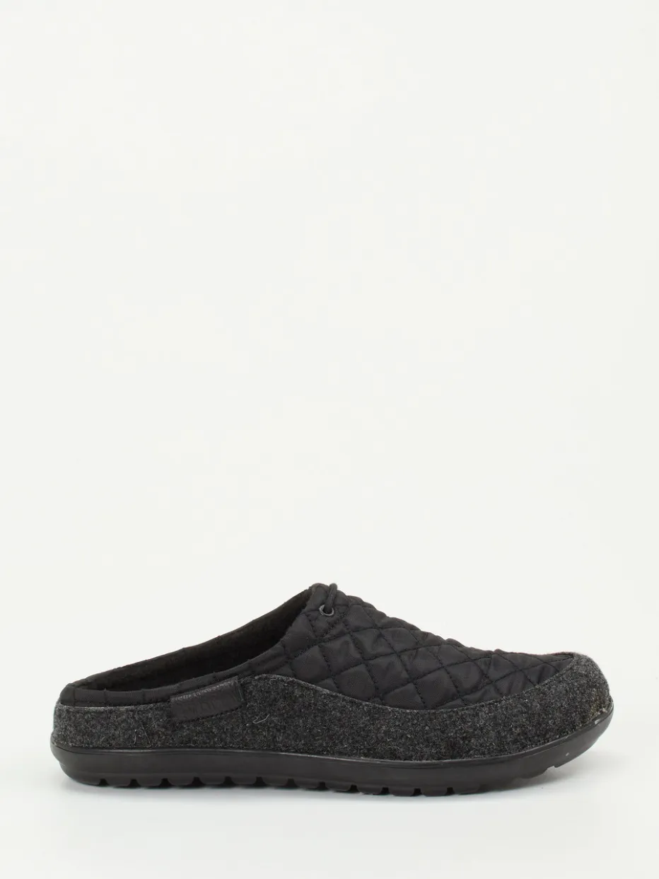 Dieser gepolsterte Hausschuh von Westland kombiniert gestepptes Textil mit griffigem Filz und bietet zuverlässigen Komfort für drinnen. Die profilierte Gummisohle sorgt für rutschfesten Halt auf allen Untergründen.