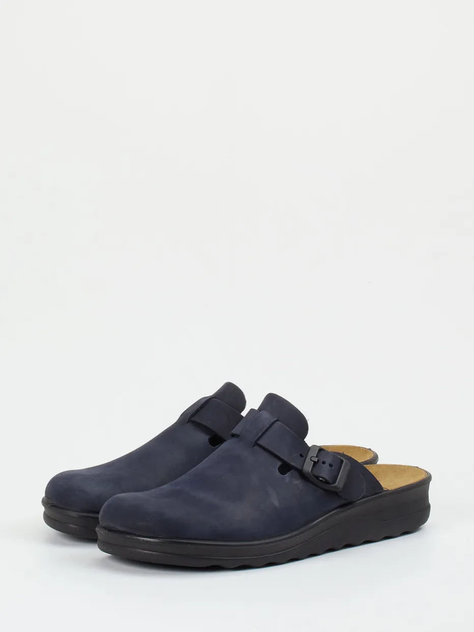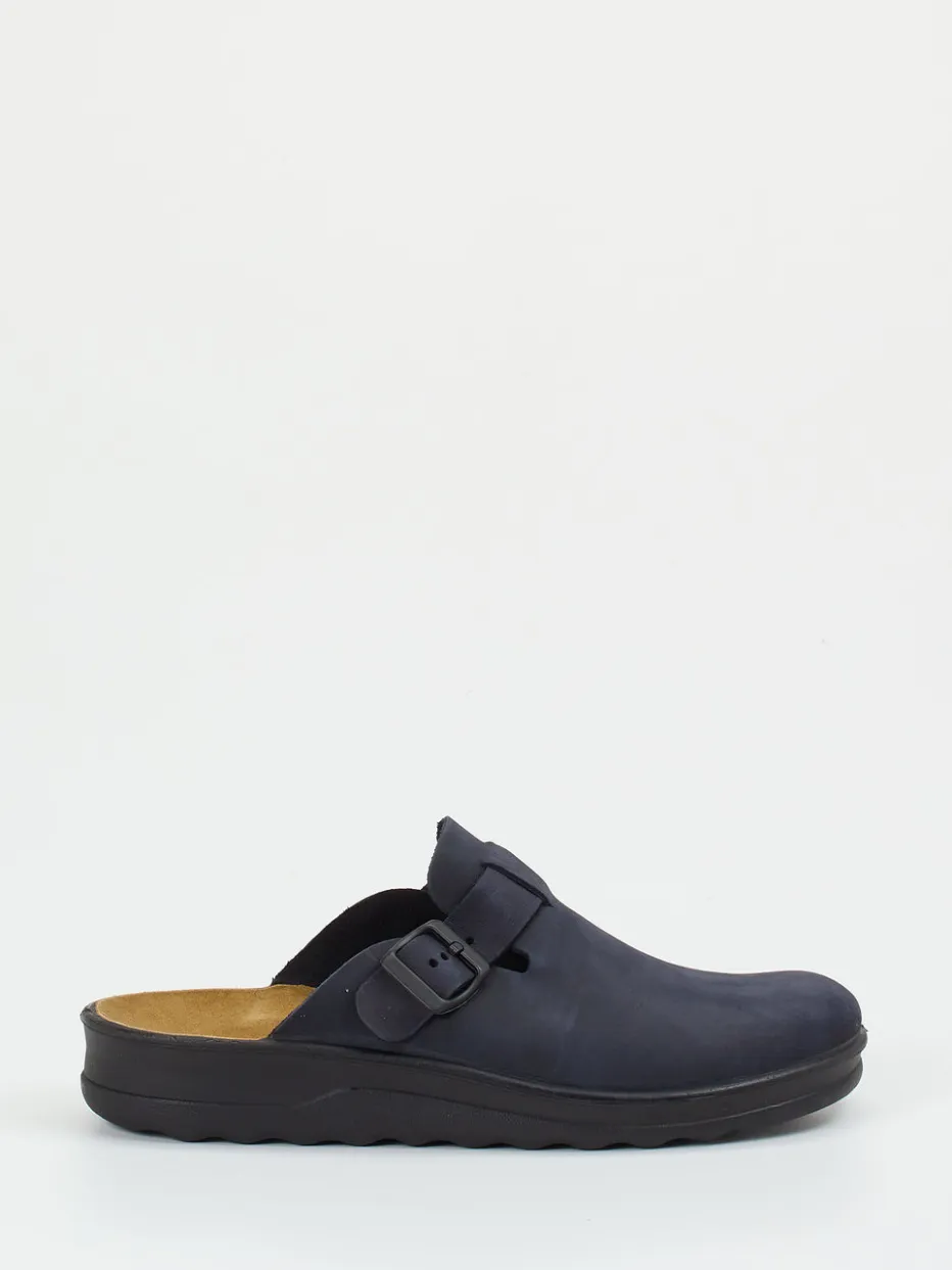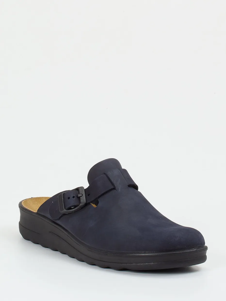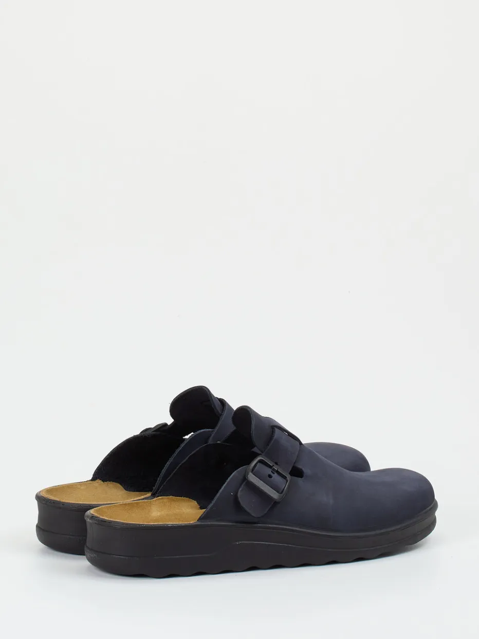 Reduziert und bequem vereint.Westland präsentiert mit diesem dunkelblauen Hausschuh-Clog ein klares Statement für Komfort und Alltagstauglichkeit. Ideal zum Hineinschlüpfen nach einem langen Tag, überzeugt das Modell mit samtig angeschliffenem Nubukleder und dezenter, matter Oberfläche. Die geschlossene Vorderpartie geht in eine offene Ferse über, ergänzt durch eine tonale, verstellbare Schnalle. Innen rundet ein lederbezogenes, ergonomisch geformtes Fußbett das Komforterlebnis ab. Die leichte Gummisohle ist rutschhemmend und unterstützt den dezenten, normcore-inspirierten Look. Ein funktionaler Begleiter für Zuhause und entspannte Stunden. Zeitloser Komfort mit reduzierter Designästhetik von Westland.