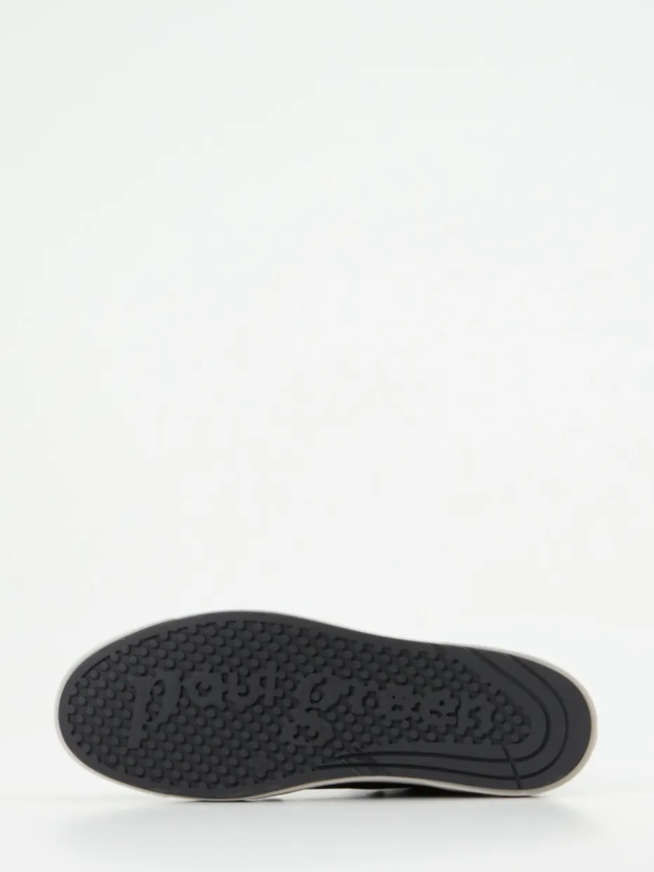 Cleanes Design, maximaler Komfort.Paul Green präsentiert mit diesem Sneaker eine sportlich-elegante Variante des High-Top-Designs. Für entspannte City-Tage oder stylische Freizeitoutfits verbindet das Modell genarbtes, schwarzes Kalbleder mit weichem Frottee-Innenfutter und leichtem Schimmer. Die offwhitefarbene Gummisohle mit rutschhemmendem Noppenprofil sorgt für einen harmonischen Kontrast und sicheren Halt. Ton-in-Ton-Nähte, perforierte Toebox und breite Schnürsenkel unterstreichen den minimalistischen Look. Inspiriert vom Streetwear-Trend, trifft Komfort auf zeitgemäße Silhouette. Paul Green steht für handwerkliche Qualität und modernes Understatement mit Stil.