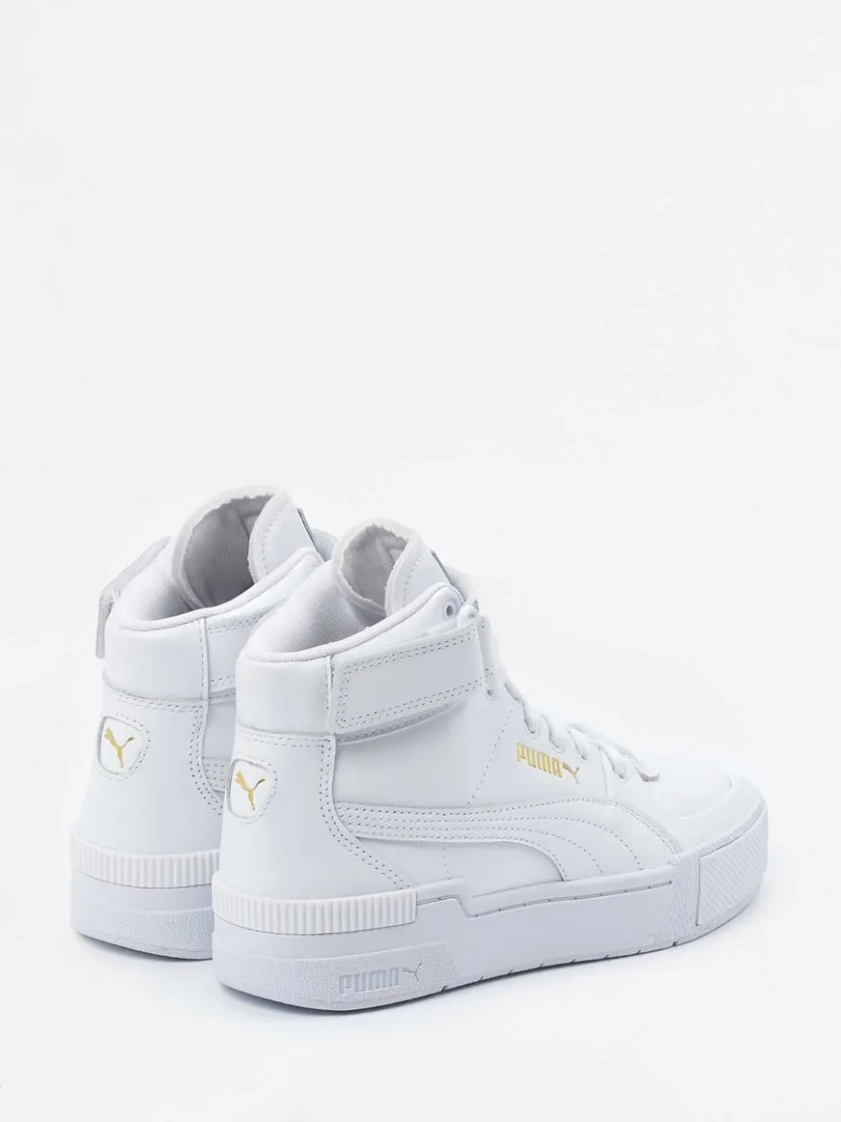 Streetstyle mit Heritage-Flair.Puma präsentiert mit diesem High-Top Sneaker ein Modell, das sportliche Eleganz und Retro-Charakter vereint. Für urbane Styles mit klarer Haltung sorgt das hochwertige Kalbleder mit matter Oberfläche, ergänzt durch hellgraue Akzente und goldfarbene Logoprägungen. Die knöchelhohe, voluminöse Silhouette bietet dank Schnürung und Klettverschluss sicheren Halt, während die gepolsterte Zunge und Textilfütterung für Tragekomfort stehen. Inspiriert von klassischen Basketball-Silhouetten passt der Sneaker perfekt zu lässigen Streetwear-Outfits im „Quiet Luxury“-Trend. Ideal kombinierbar mit Oversized Hoodie und weißen Sportsocken. Ein Model für alle, die sportliche Individualität mit hochwertigen Materialien verbinden möchten.