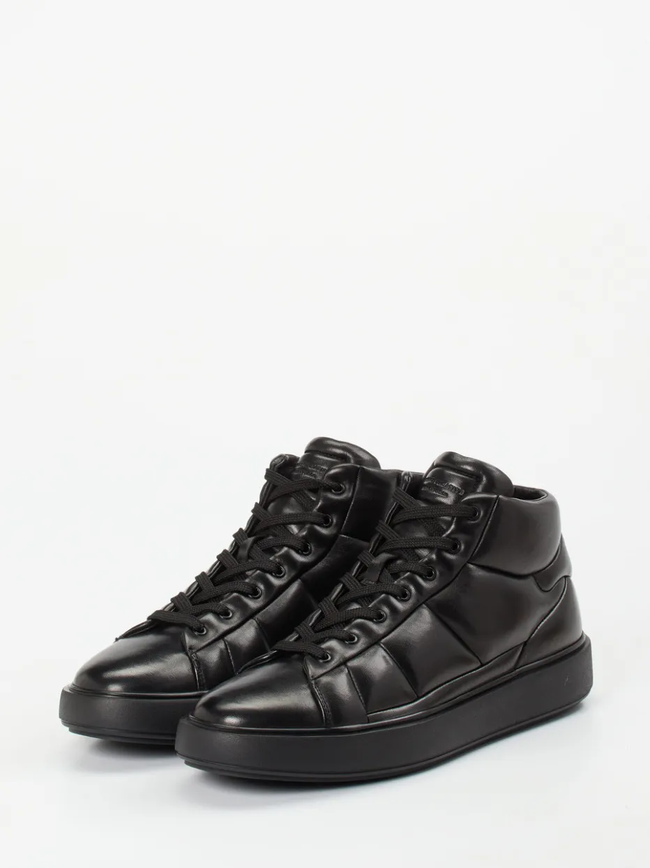 Urbaner Style mit Komfortfaktor.Der High-Top Sneaker von Officine Creative überzeugt durch seine klare Formsprache und hochwertige Verarbeitung. Ideal für urbane Looks im Alltag: Das tiefschwarze Lammleder mit leicht glänzender Oberfläche verleiht dem Schuh seinen edlen Charakter. Die gepolsterte Stepp-Optik unterstreicht den modernen Streetwear-Look, während Schnürung und seitlicher Reißverschluss das Anziehen erleichtern. Eine profilierte Gummisohle sorgt für Trittfestigkeit. Der Schuh richtet sich an ein trendorientiertes Publikum mit Sinn für Struktur und Reduktion. Zeitgemäßer Purismus – mit handwerklichem Anspruch von Officine Creative.