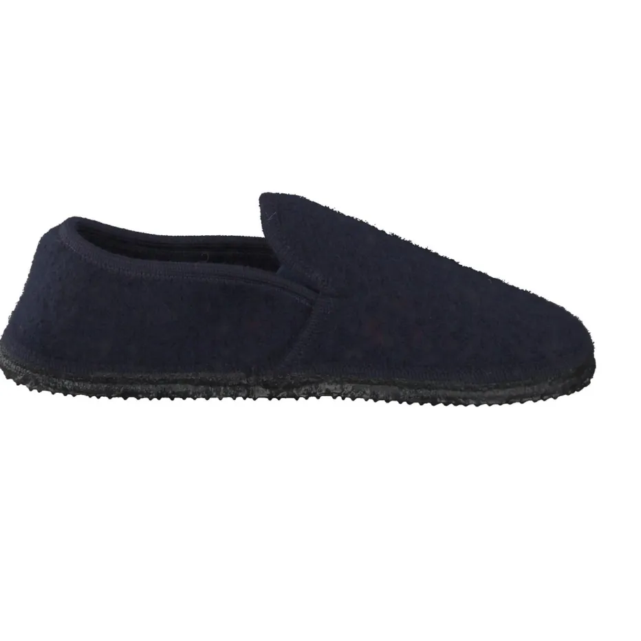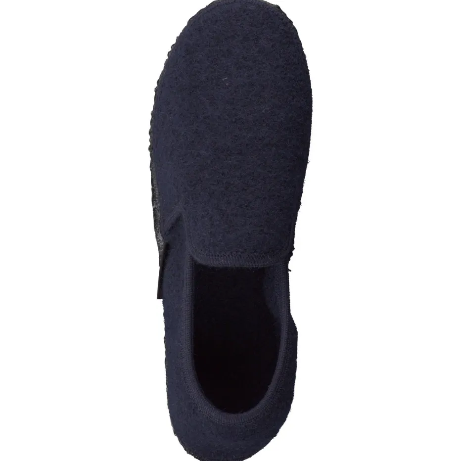 Minimalistisch und behaglich zugleich.Giesswein bietet mit diesen Hüttenschuhen ein stilvolles Modell für den Innenbereich. Ideal für gemütliche Momente im Alltag: Der Hausschuh aus dunkelblauer Schafswolle überzeugt durch seine filzige Haptik und geschlossene Form. Seitliche Elastikeinsätze neben der hochgezogenen Lasche erleichtern den Einstieg, während eine rutschfeste Gummisohle zuverlässigen Halt auf glatten Böden bietet. Dezente Ton-in-Ton-Nähte und ein kleines Label unterstreichen die minimalistische Anmutung im Sinne des „Quiet Luxury“-Trends. Perfekt zu Loungewear in Naturtönen kombinierbar. Natürliches Material trifft auf langlebige Verarbeitung – typisch Giesswein.