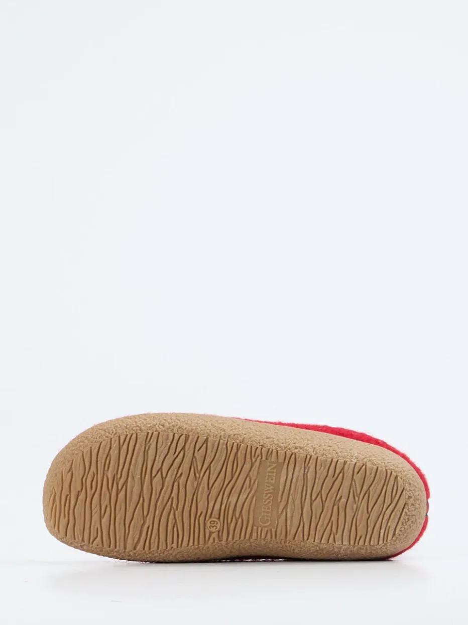 Der warmrote Hausschuh mit abgerundeter Silhouette überzeugt durch eine weich-florige Oberfläche und funktionales Komfortkonzept: Ein Kordelzug-Verschluss mit Stopper ermöglicht individuellen Sitz, eine Zuglasche hinten erleichtert das Anziehen. Die rutschfeste Honiggummi-Sohle bietet Trittsicherheit, auch auf Fliesen. Der Look kombiniert alpine Heritage mit minimalistischer Klarheit und harmoniert stilvoll mit Loungewear und Wollsocken.