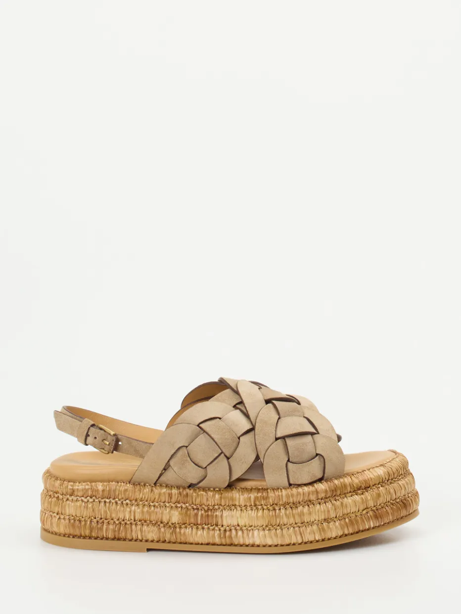Die fein geflochtene Plateausandale von Tod’s vereint natürliche Materialien mit luxuriöser Handwerkskunst und vermittelt stilvolles Sommerflair mit mediterranem Charakter.