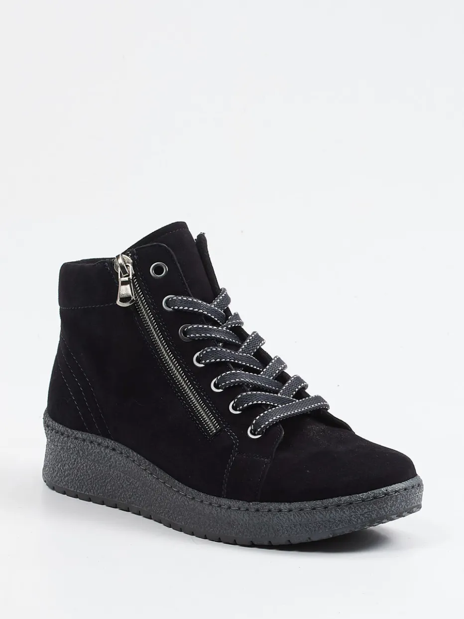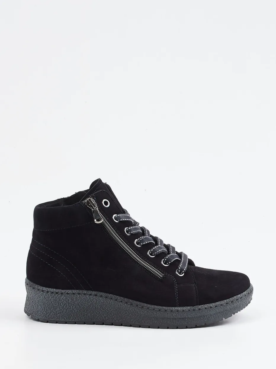 Der halbhohe Damenboot von Semler kombiniert samtiges Veloursleder mit funktionalen Details und einer bequemen Keilsohle für urbanen Komfort im Alltag.