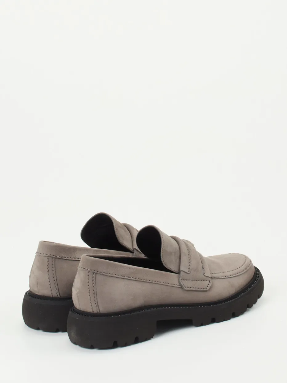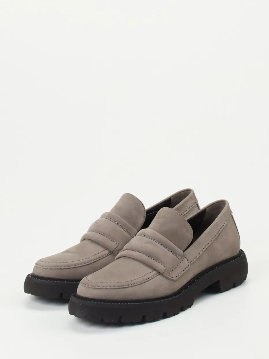 Dieser Damen-Loafer verbindet hochwertiges Nubukleder mit einer markanten Gummisohle im Chunky-Stil und trifft damit den aktuellen Quiet-Luxury-Trend.