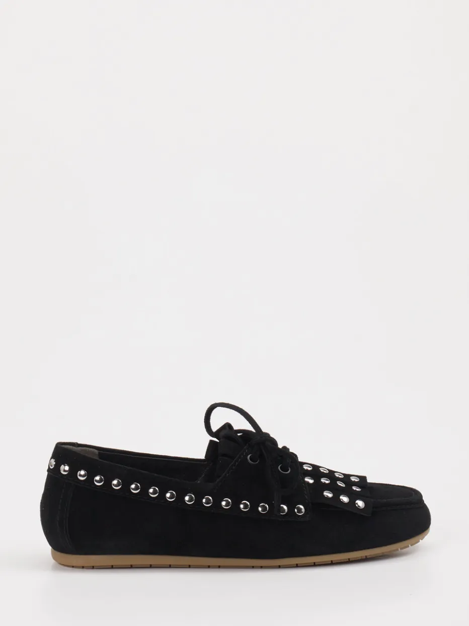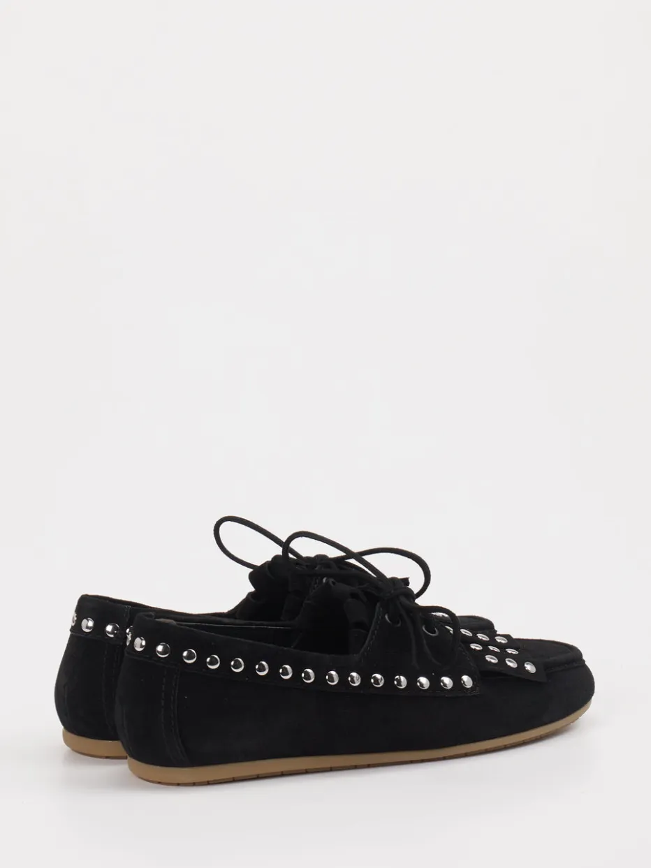 Silberfarbene Nieten und eine Fransenlasche verleihen diesem Mokassin einen expressiven Streetstyle-Charakter mit Vintage-Flair. Die weiche Gummisohle sorgt für angenehmen Tragekomfort im Alltag.