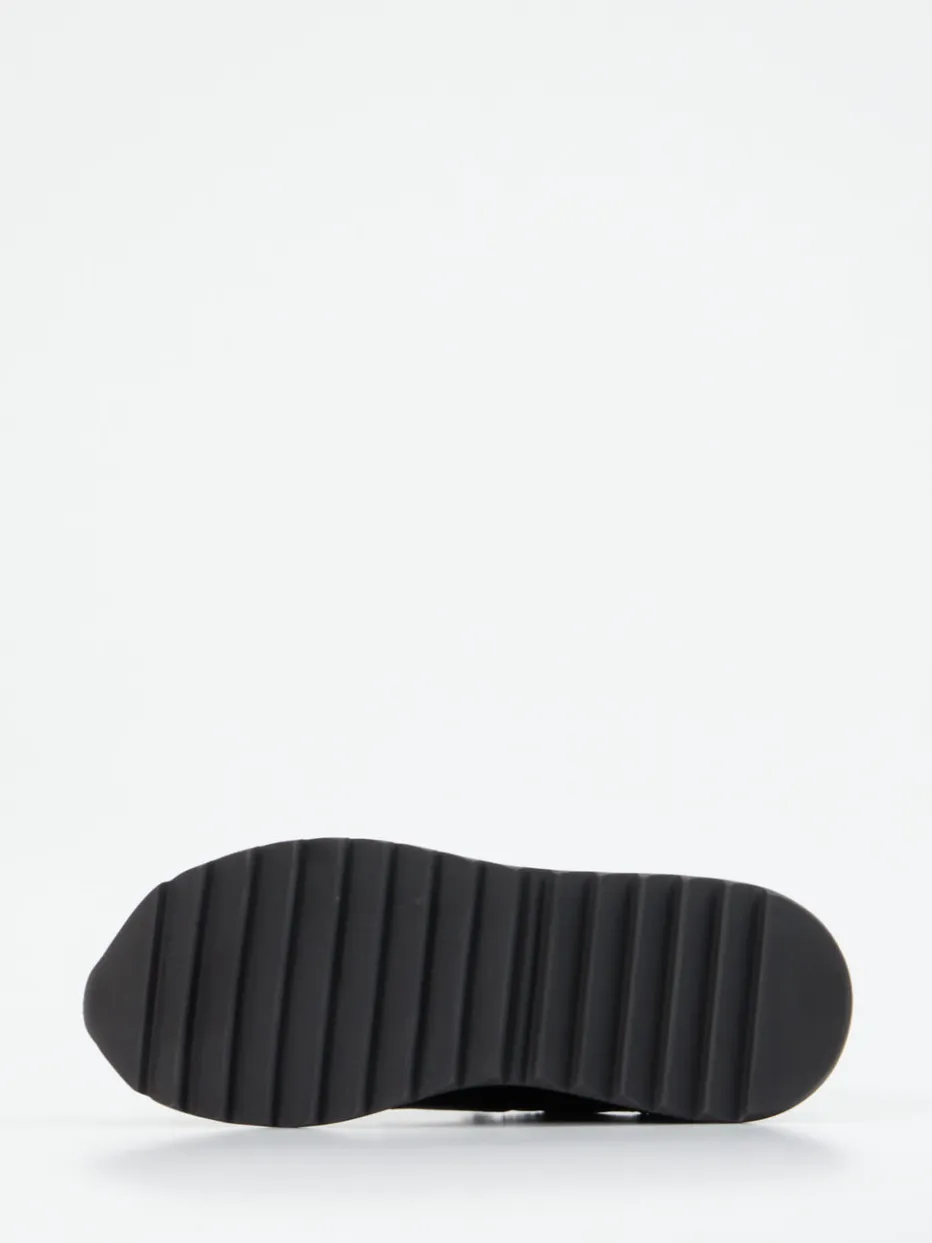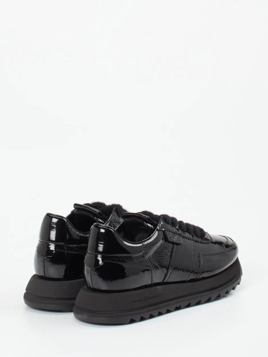Dieser Sneaker kombiniert glänzendes Lackleder mit einer markant profilierten Plateausohle – perfekt für moderne, monochrome Streetstyles.
