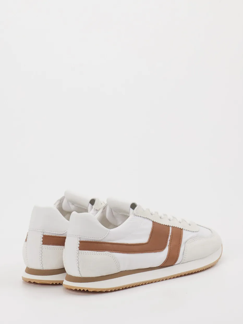 Vintage-Flair trifft Alltagskomfort. Kennel & Schmenger präsentiert einen Sneaker, der Casual-Design mit modischer Aussagekraft verbindet. Ideal für urbane Streifzüge oder spontane Freizeitaktivitäten überzeugt das Modell durch seinen Materialmix aus hochwertigem Veloursleder und atmungsaktivem Textil. Das klare Weiß wird durch mittelbraune Akzente und Ton-in-Ton-Nähte ergänzt, während die flache Silhouette und die leichte Gummisohle mit profilierter Unterseite für Bewegungskomfort sorgen. Die klassische Schnürung und die Seitenapplikationen im Retro-Runner-Stil betonen den sportiven Charakter mit Vintage-Note. Lässt sich vielseitig zu Denim oder sportlich-eleganter Alltagsmode kombinieren. Markentypisch stilvoll und trendsicher interpretiert.