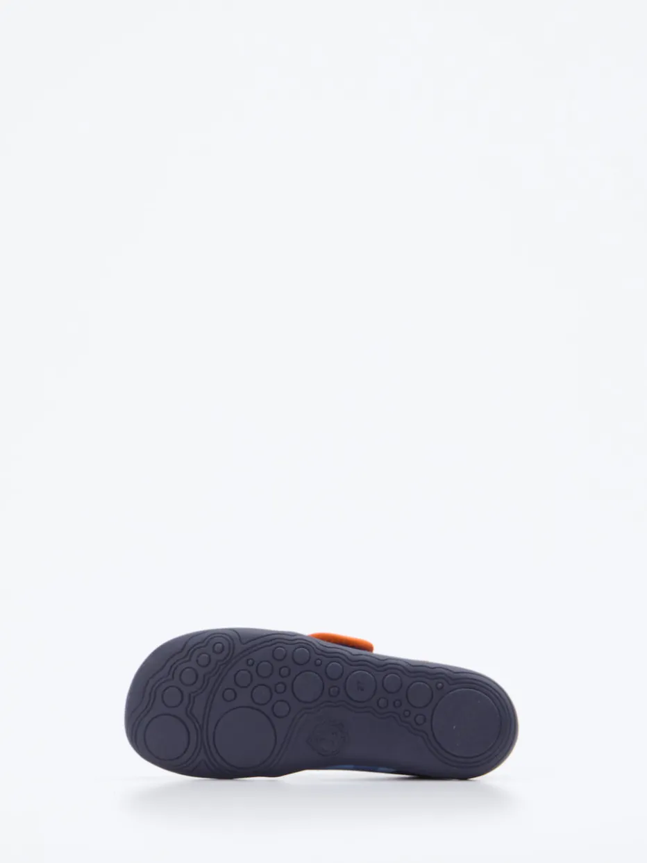 Verspieltes Design für kleine Entdecker.Affenzahn präsentiert mit diesem Kinder-Hausschuh ein funktionales Modell für Zuhause und Alltag. Seine weiche Textiloberfläche unterstreicht den angenehmen Tragekomfort, während kontrastive orangene Akzente und ein Kindermotiv in Hellblau für visuelle Frische sorgen. Die klassische, flache Form ist mit einem doppelt gearbeiteten Klettverschluss ausgestattet, der eigenständiges An- und Ausziehen erleichtert. Eine robuste Gummisohle sorgt für sicheren Halt auf glatten Böden – ideal für aktives Spielen zuhause. Inspiriert von skandinavischem Design trifft das Modell einen modernen, kindgerechten Stil. Affenzahn steht für liebevolle Details und funktionale Alltagsbegleitung mit Persönlichkeit.