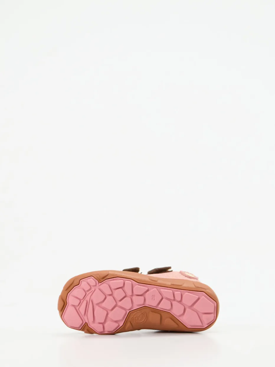 Ideal für Bewegung im Freien oder den Alltag im Kindergarten: Das wetterfeste, recycelte Textilmaterial mit leicht strukturierter Oberfläche sorgt für angenehmen Tragekomfort und passt sich dem Kinderfuß optimal an. Die Kombination aus Altrosa, Mittelbraun und Hellrosa greift den aktuellen Color-Blocking-Trend auf. Dank zweifacher Klettverschlüsse mit liebevollen Reh-Details gelingt das An- und Ausziehen kinderleicht. Die flexible Gummisohle bietet sicheren Halt und unterstützt natürliches Abrollen – barfußähnliches Gehen inklusive. Perfekt zu Softshelljacke und Mini-Rucksack kombinierbar.