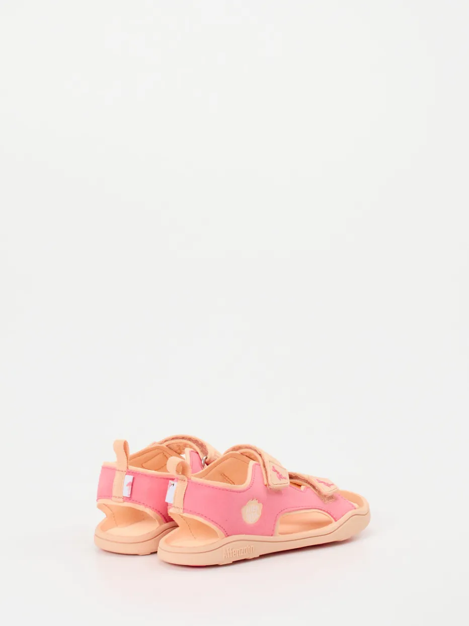 Softer Halt für kleine Abenteuer.Die Marke Affenzahn bringt mit diesen Kindersandalen eine funktionale Begleitung für warme Tage. Für Spielplatzbesuche, Urlaubsabenteuer oder den täglichen Weg in die Kita bieten die Sandalen angenehme Bewegungsfreiheit. Das rosa Textilmaterial besteht aus recycelten Fasern und zeigt sich in matter Optik, kontrastiert vom apricotfarbenen, ultraweichen Innenfutter aus Leder. Die offene, ergonomische Form, praktische Klettverschlüsse und eine Zuglasche sorgen für kinderleichtes Anziehen. Dazu bietet die flexible Gummisohle mit profilierter Struktur sicheren Halt. Im Look trifft Color-Blocking auf Y2K-inspirierte Farbigkeit – ideal für komfortaffine Kids mit Stil. Affenzahn steht für durchdachten Komfort in kindgerechtem Design.