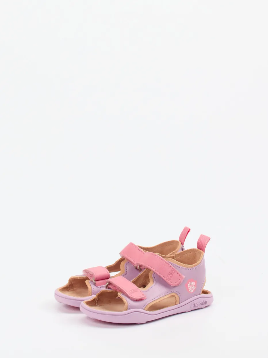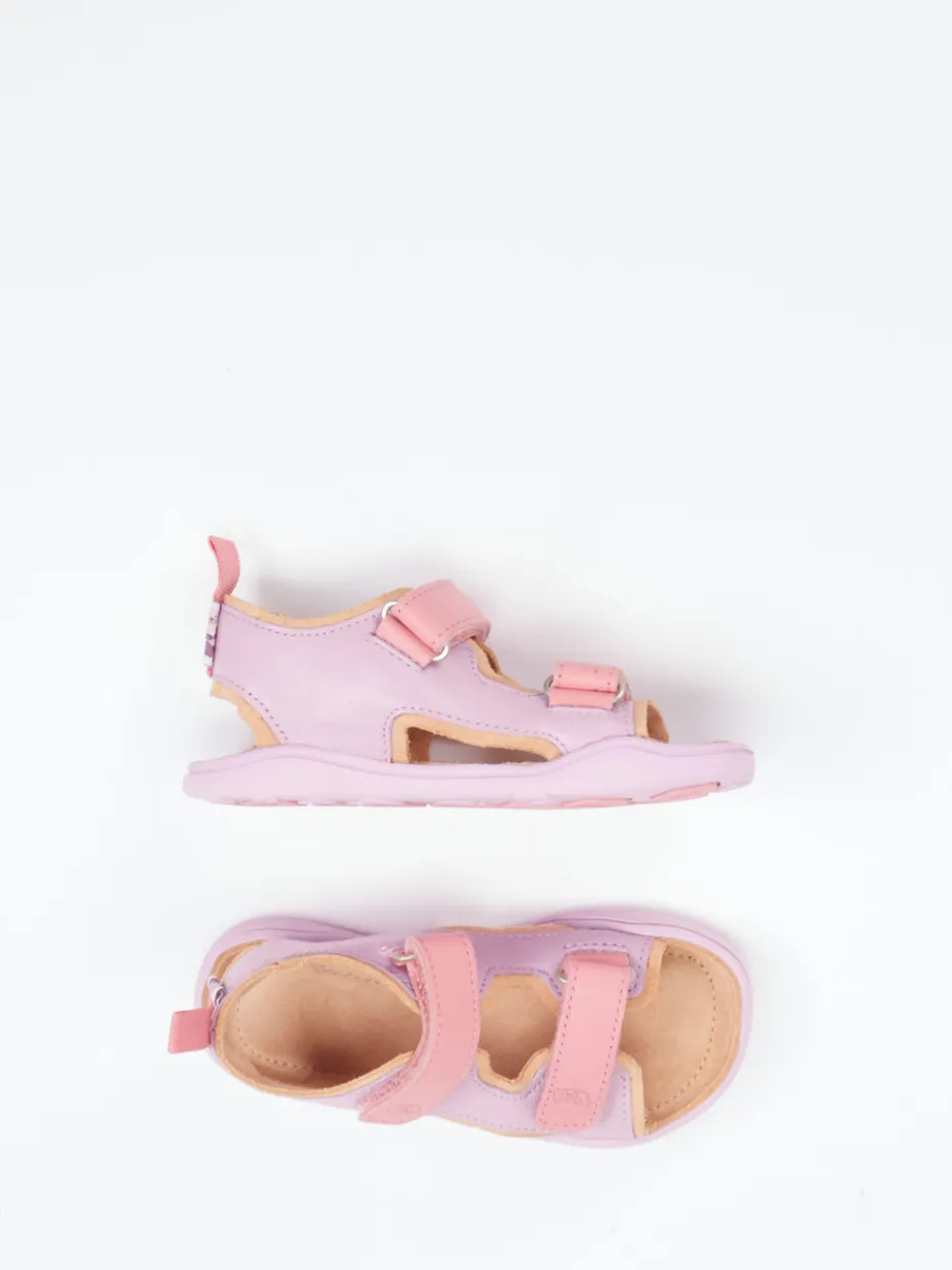 Ob beim Spielen im Park oder beim Strandspaziergang – der offene Schnitt mit sicherem Fersenhalt bietet angenehme Bewegungsfreiheit. Das samtig-matte Kalbleder trifft auf fliederfarbene Akzente und rosa Details, ergänzt durch Ton-in-Ton-Nähte und ein dezent geprägtes Markenlogo. Drei Klettverschlüsse und eine praktische Textilzuglasche erleichtern das An- und Ausziehen. Die strukturierte Gummisohle unterstützt ein natürliches Laufgefühl und passt perfekt zum angesagten Pastelltrend der Saison. Funktional, minimalistisch und alltagstauglich – kombinierbar mit Shorts und Sonnenhut.