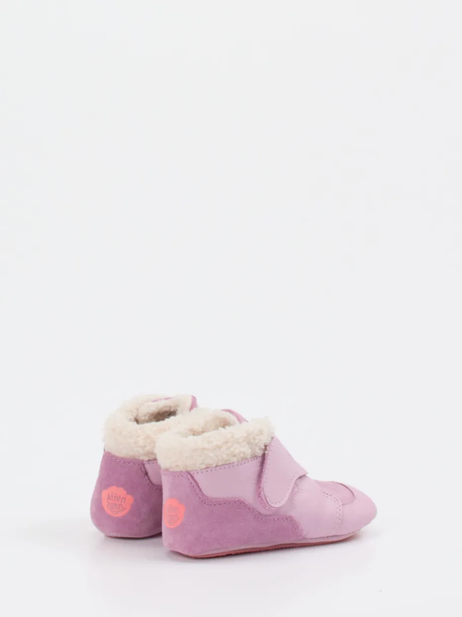 Für kleine Schritte mit Stil.Affenzahn präsentiert mit diesen Krabbelschuhen eine kindgerechte Lösung für warme Füße im Alltag. An kühlen Tagen im Spielzimmer bieten die knöchelhohen Lauflernschuhe Sicherheit und Geborgenheit. Das hochwertige Kalbleder zeigt sich außen samtig-matt in pastelligem Rosa und wurde um geprägte Tiergesichter und ein farbiges Nasendetail ergänzt. Für wohlige Wärme sorgt das kuschelige Teddyfutter aus Textilfaser. Dank Klettverschluss lassen sich die Schuhe mühelos anziehen, während die strukturierte Gummisohle rutschhemmende Stabilität gewährleistet. Der Look passt zur Quiet-Luxury-Trendwelt der Winterkindermode 2024. Affenzahn steht für Komfort, spielerisches Design und durchdachte Funktion – ideal im Familienalltag.