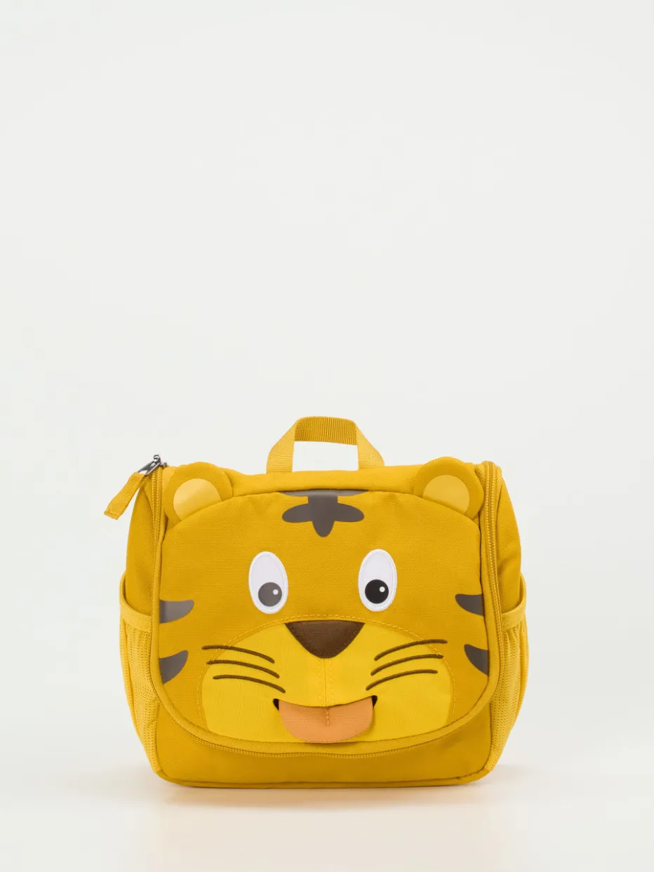 Spielerisch und funktional: Die Kulturtasche mit Tiger-Motiv verbindet kindgerechtes Design mit praktischer Innenstruktur und wasserabweisenden Materialien.