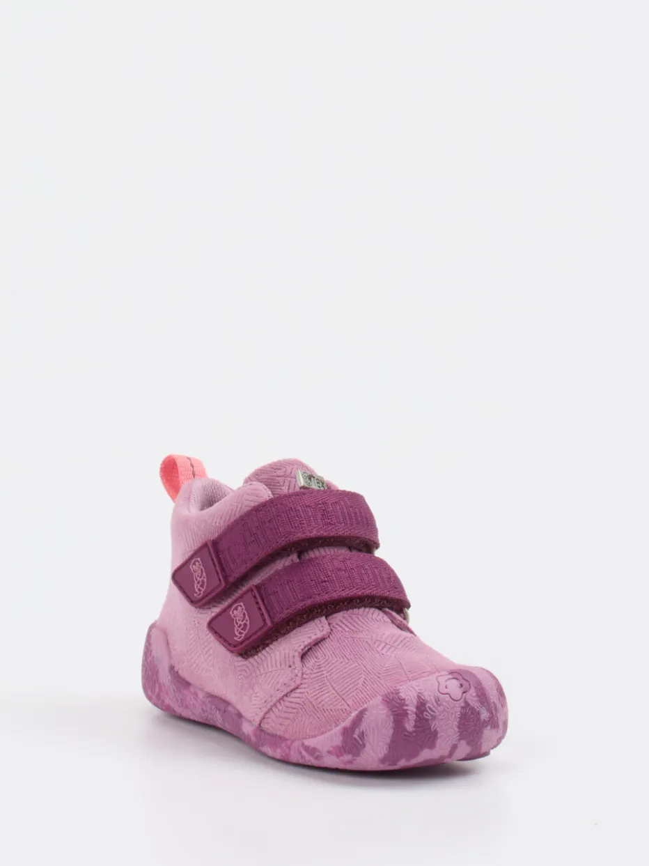 Farbenfrohe Funktion für kleine Entdecker.Affenzahn zeigt mit diesen Lauflernschuhen, wie durchdachte Kinderschuhe aussehen können. Ob zu Hause, in der Kita oder beim Spaziergang: Das Modell überzeugt mit weichem Veloursleder, kombiniert mit einer strukturierten Blattoberfläche. Die kräftige Rosa-Pink-Färbung wird von pflaumen- und korallfarbenen Akzenten ergänzt, was dem Design eine spielerische Leichtigkeit verleiht. Zwei praktische Klettverschlüsse ermöglichen kinderleichtes Anziehen, während die profilierte Gummisohle Trittsicherheit gibt. Die rund-kompakte Form und kontrastierende Fersenlasche runden den skandinavisch inspirierten Look ab. Ideal kombinierbar mit Leggings und Outdoorjacke. Affenzahn verbindet kindgerechtes Design mit zuverlässigem Outdoor-Komfort.