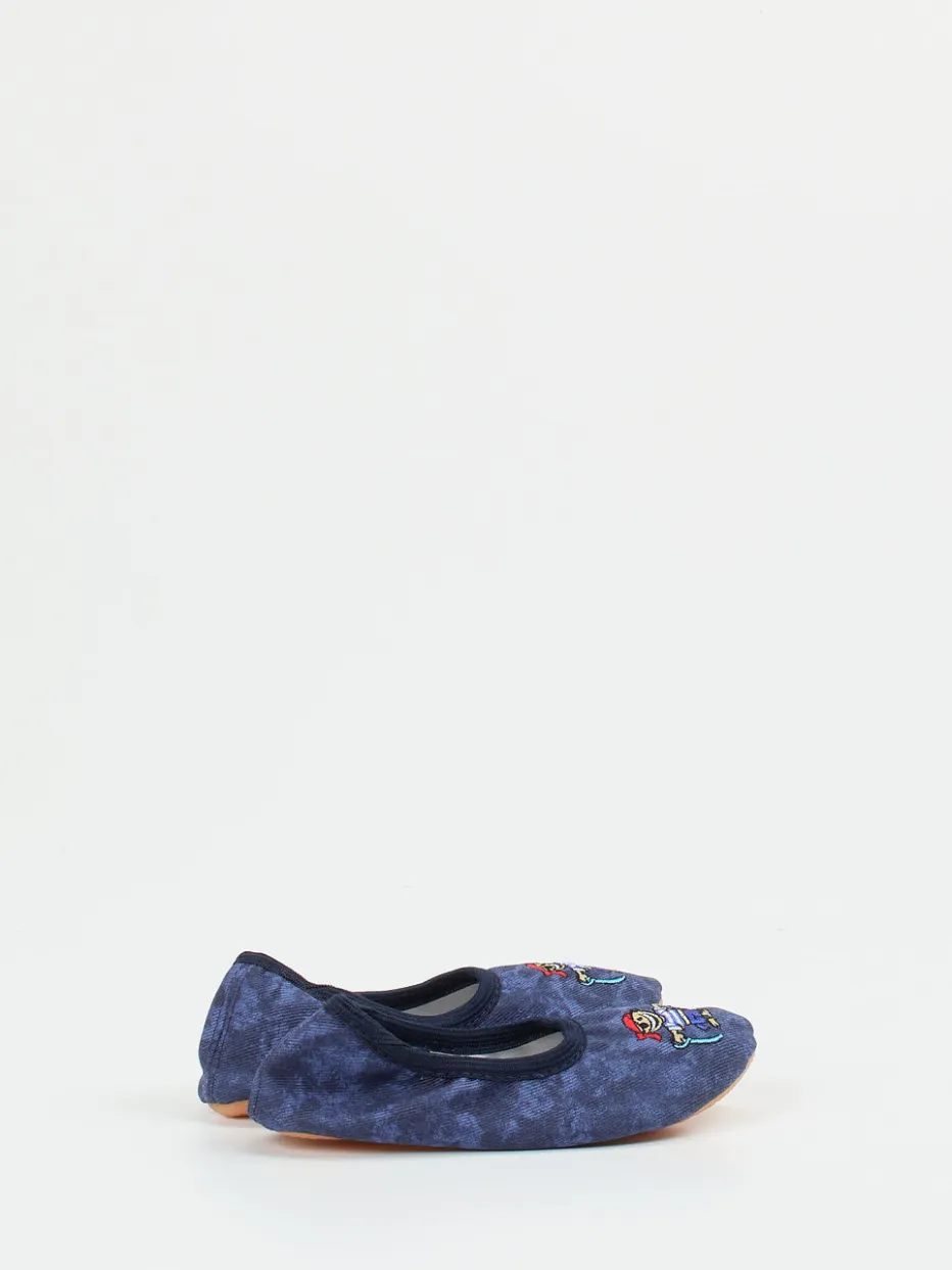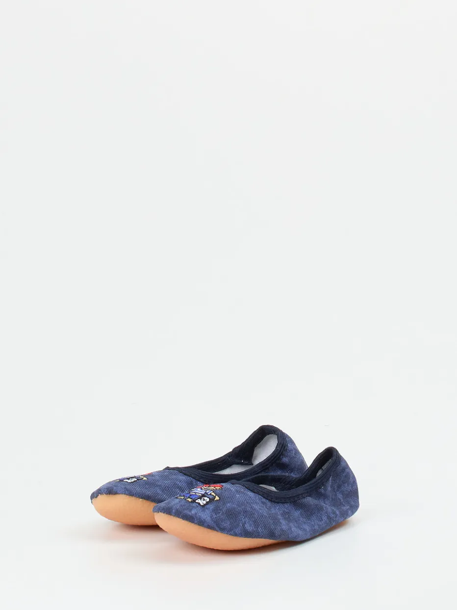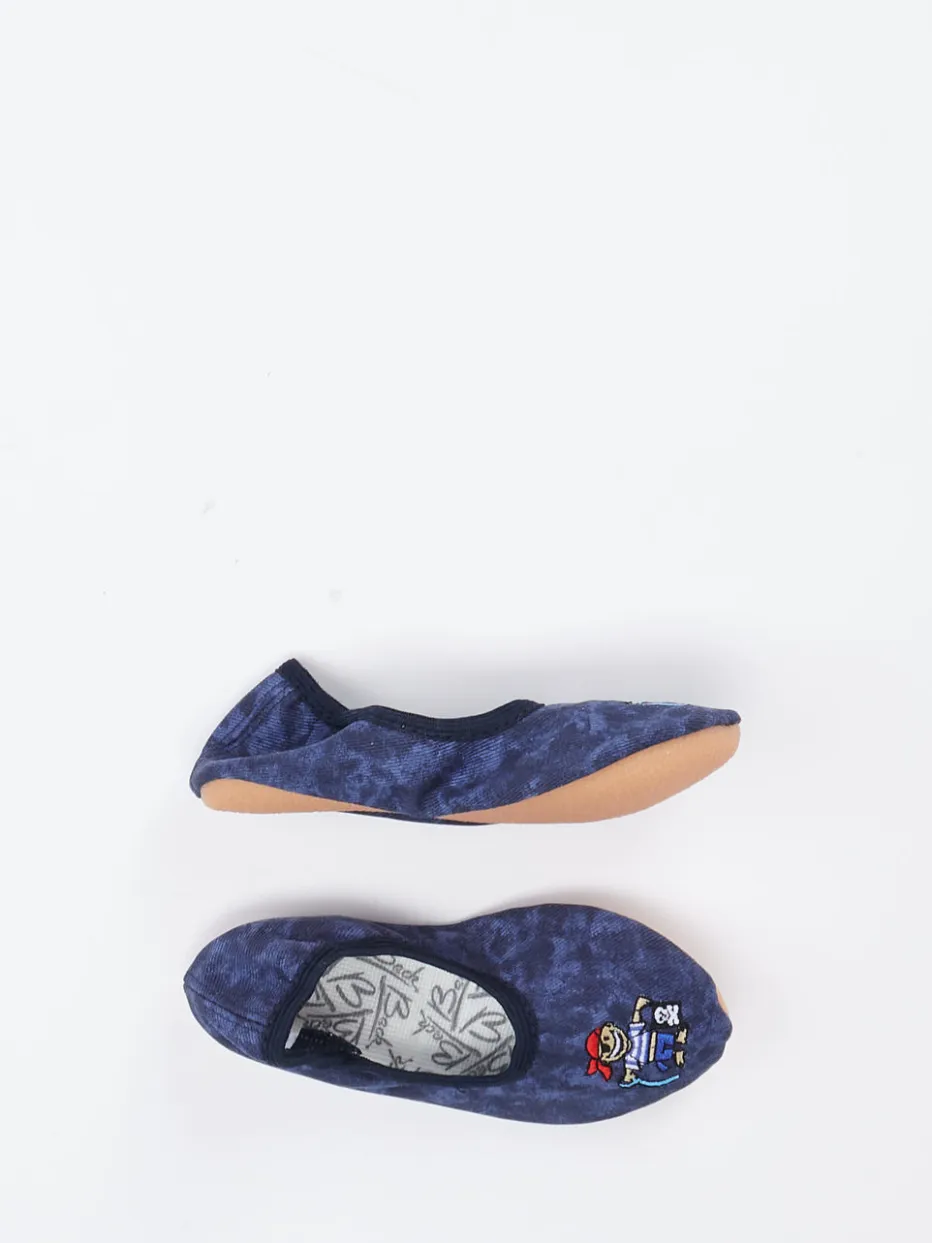 Für kleine Abenteurer im Alltag.Beck präsentiert bequeme Gymnastikschläppchen für Kinder mit liebevollen Details und funktionalem Design. Ob beim Turnen, Spielen oder als Hausschuh – das weiche Textilmaterial mit matter Oberfläche bietet angenehmen Tragekomfort, unterstützt durch einen elastischen Einstieg und eine vollgummierte, rutschfeste Laufsohle. Das dunkelblaue Modell in Melange-Optik wird von einer auffälligen Piraten-Stickerei geziert – ein verspielter Blickfang für junge Entdecker. Die flache, runde Form sorgt für viel Bewegungsfreiheit. Ideal kombinierbar mit bequemen Freizeitstyles – mit dem sportlich-lässigen Design passt das Modell perfekt zur Indoor-Comfortwear. Verlässlicher Komfort mit charaktervollem Kinderdesign von Beck.