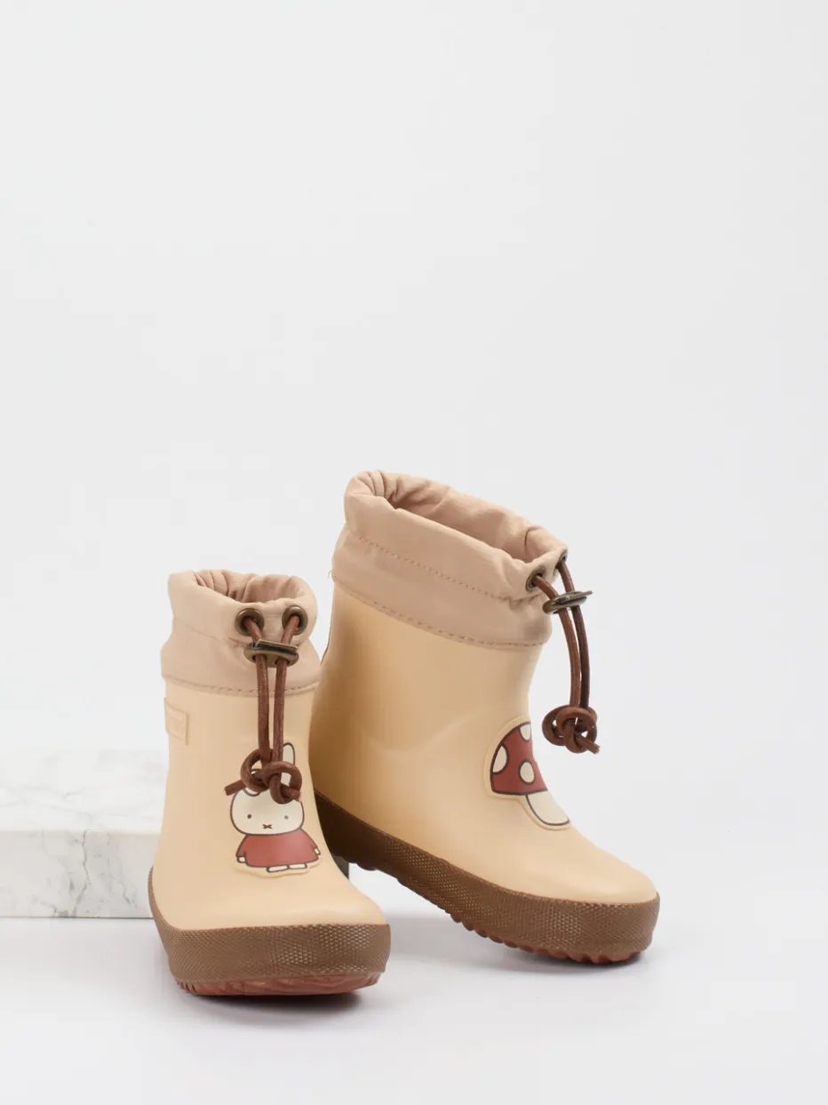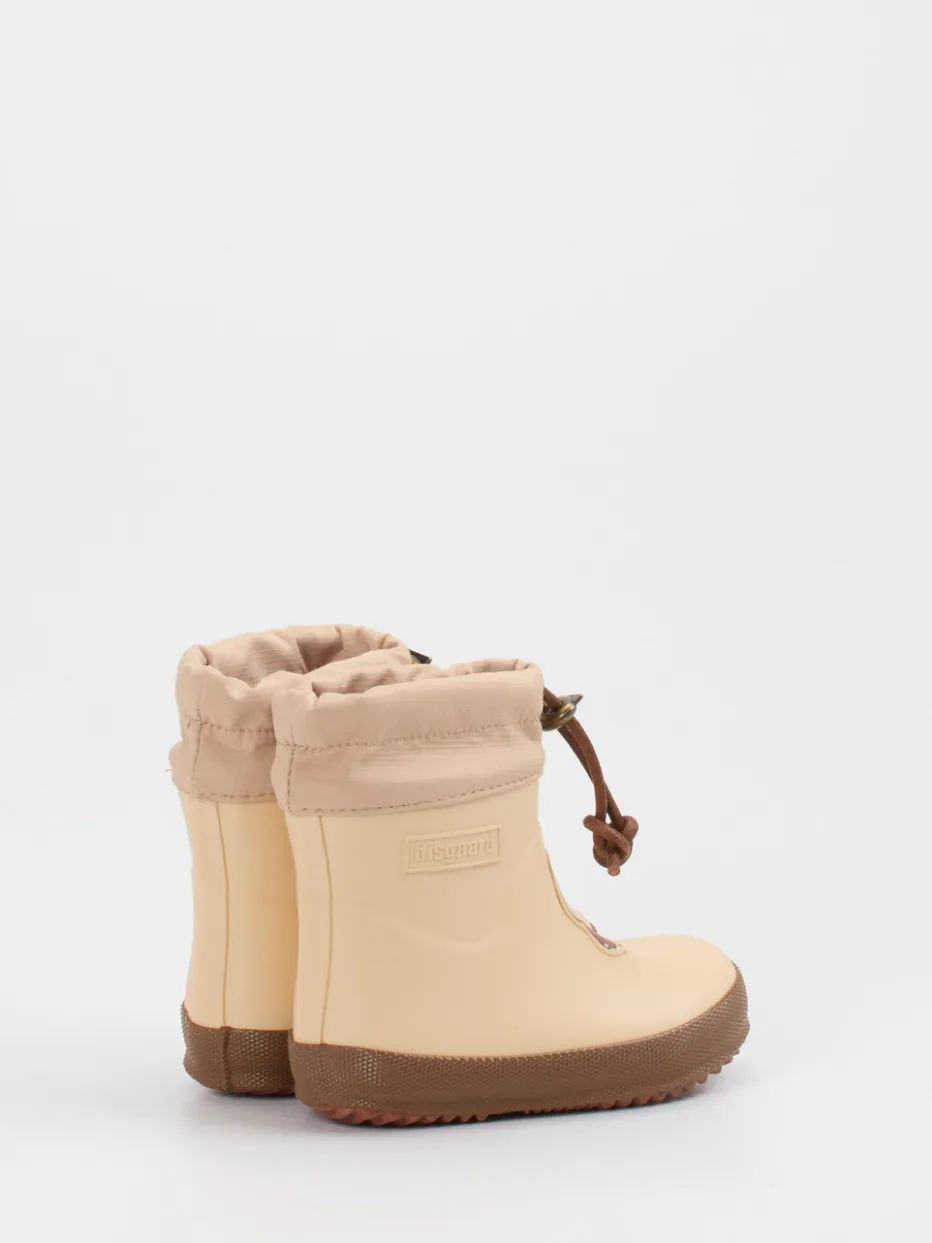 Kindgerechtes Design für nasses Wetter.Bisgaard präsentiert einen funktionalen Gummistiefel für Kinder mit verspieltem Outdoor-Fokus. Perfekt für matschige Wege und spontane Pfützensprünge: Das Modell aus robustem Gummi bietet mit warmer Textilfütterung und wasserabweisender Oberfläche optimalen Schutz. Der hellbeige Grundton wird durch kindlich illustrierte Hasen- und Pilz-Motive aufgelockert, die typische Rundform durch einen verstellbaren Kordelzug ergänzt. Ein farblich abgesetzter, griffiger Sohlenbereich sorgt für guten Halt. Die skandinavisch inspirierte Gestaltung verbindet alltagstaugliche Funktion mit spielerischem Charakter. Kombinierbar mit Regenjacke und Thermo-Leggings. Verbindet skandinavische Klarheit mit kindgerechter Verspieltheit – in bewährter Bisgaard-Qualität.