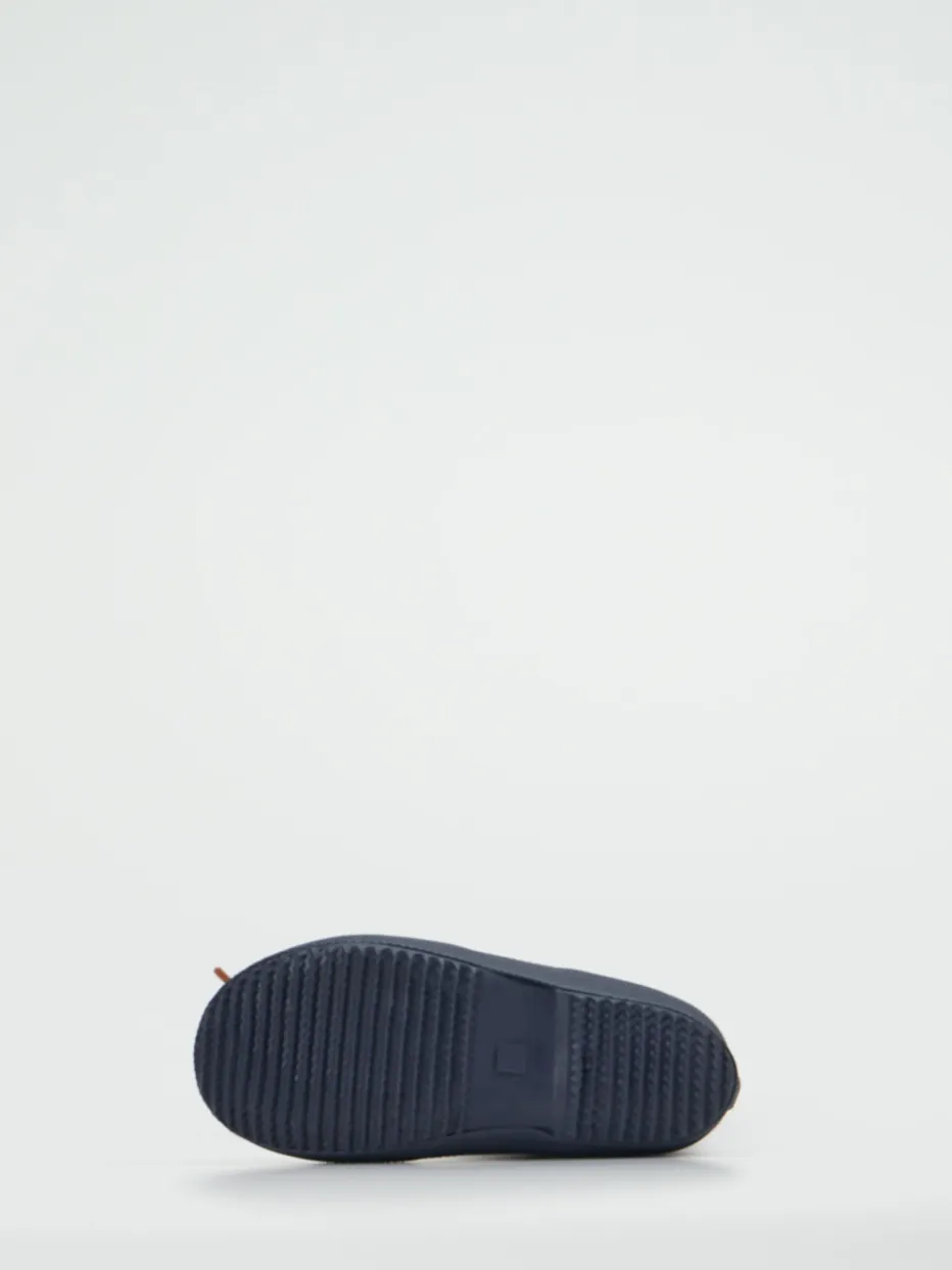 Warm gefüttert durch nasse Tage.Bisgaard zeigt mit diesem Gummistiefel für Kinder einen funktionalen Begleiter für Herbst und Winter. Ob auf dem Spielplatz oder bei Waldspaziergängen: Der hochschaftige Gummistiefel schützt kleine Füße zuverlässig vor Regen und Kälte. Die matte Synthetik-Oberfläche in Dunkelblau verleiht dem Design eine klare Optik, unterstrichen vom klassischen Kordelzug samt Metallösen zur individuellen Weitenregulierung. Innen sorgt ein warmes Wollfutter in Braun für angenehme Wärme, die griffige Gummisohle bietet sicheren Halt. Inspiriert vom skandinavischen Utility-Stil verbindet der Schuh Alltagstauglichkeit mit modernen Ansprüchen an Komfort. Ein wetterfestes Modell mit kindgerechtem Tragekomfort – typisch Bisgaard.