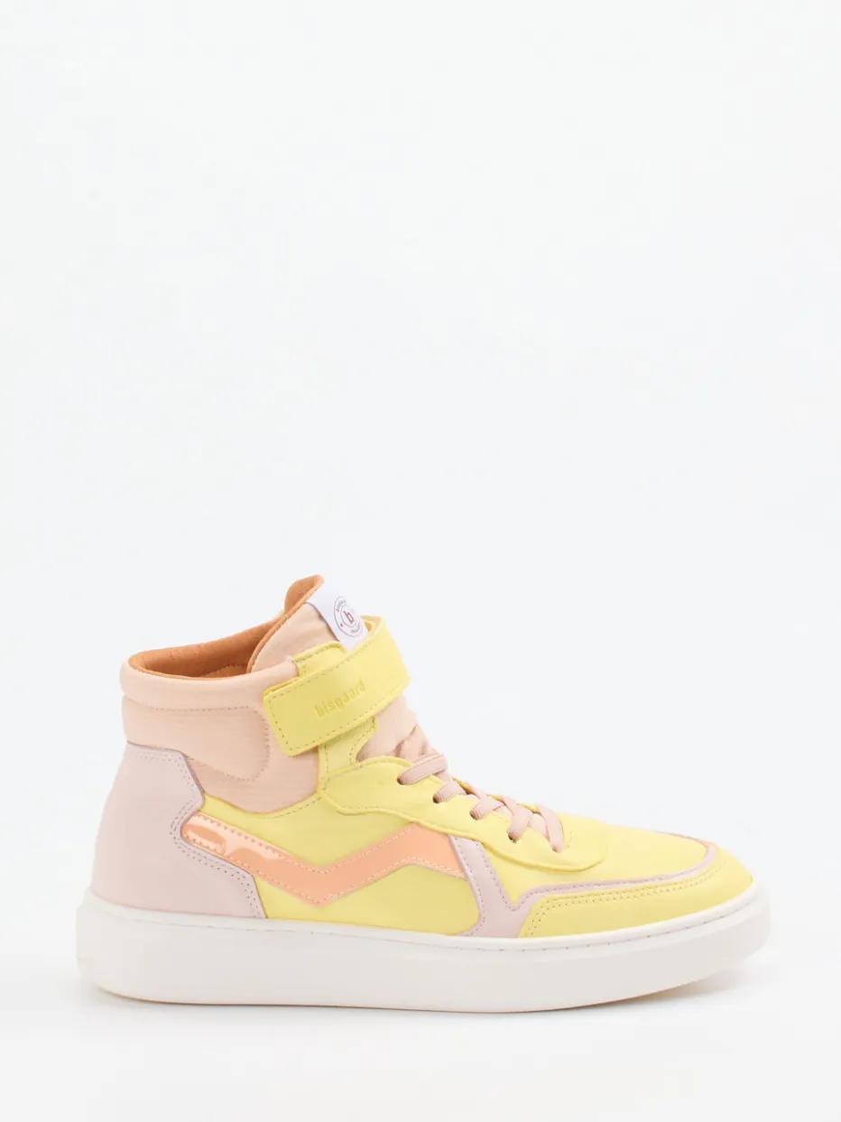 Frühjahrsfarben treffen Retro-Flair.Bisgaard bringt mit diesem High-Top-Sneaker für Kinder ein Modell im frischen Soft-Color-Blocking-Look. Beim Spielen, Spazieren oder auf dem Schulweg: Der Kinderschuh aus edlem Kalbleder, ergänzt durch textile Strukturen und einer Gummisohle, sorgt für Komfort und Stabilität. In Pastellgelb mit rosa und pfirsichfarbenen Overlays gehalten, wirkt das Modell weich und verspielt. Der gepolsterte Schaftrand und die Kombination aus Schnürung und Klettverschluss erleichtern das An- und Ausziehen spürbar. Logo-Patch auf der Lasche und tonale Nähte unterstreichen den hochwertigen Gesamteindruck. Der Look passt perfekt zum Frühlingstrend Soft Color Blocking und spricht junge, expressive Styles an. Komfortabler Alltagsbegleiter mit liebevollem Design – ganz im Sinne nordischer Kinderschuhkompetenz.