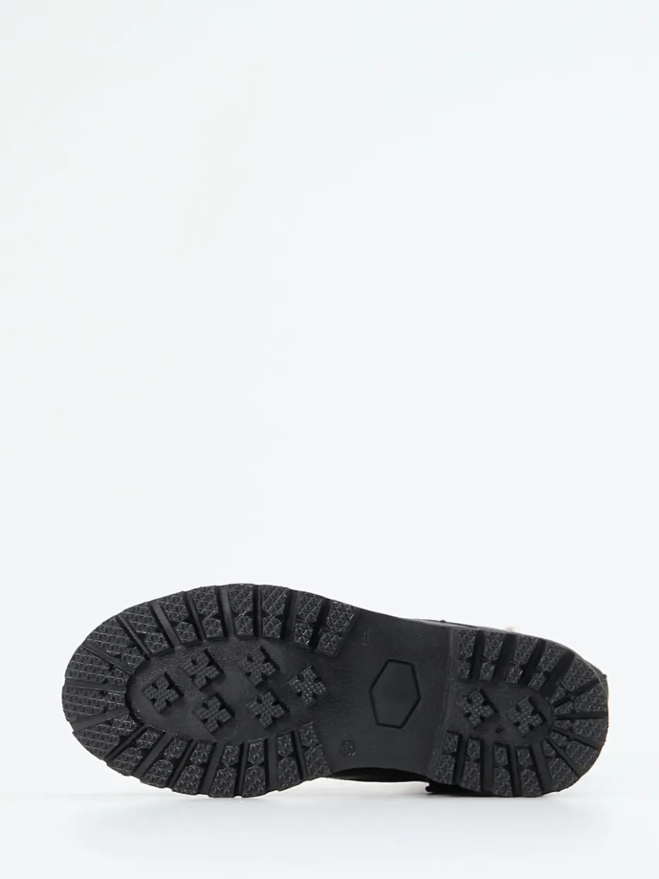 Wärme trifft Funktion. Die Marke Bisgaard präsentiert mit diesen Schnürboots ein Modell für kalte Tage. Als hochwertige Chelsea-Stiefelette für Kinder verbindet es Funktionalität mit stilvoller Optik. Ideal für kalte Wege zur Schule oder winterliche Ausflüge. Das weiche Kalbleder mit genarbter Oberfläche sorgt für eine edle Anmutung, während das warme Lammfellfutter innen für kuscheligen Tragekomfort steht. Antikgoldene Ösen, braune Kontrastnähte und ein schwarzer Gesamtlook formen eine klassisch-robuste Silhouette. Die tiefe Profilsohle aus Gummi gewährleistet dabei festen Halt auf glatten Untergründen. Elemente aus Utility-Design und skandinavischem Minimalismus wirken zeitgemäß ohne modische Übertreibung. Ein kindgerechter Winterboot mit funktionalem Reißverschluss-Komfort & textiler Raffinesse.